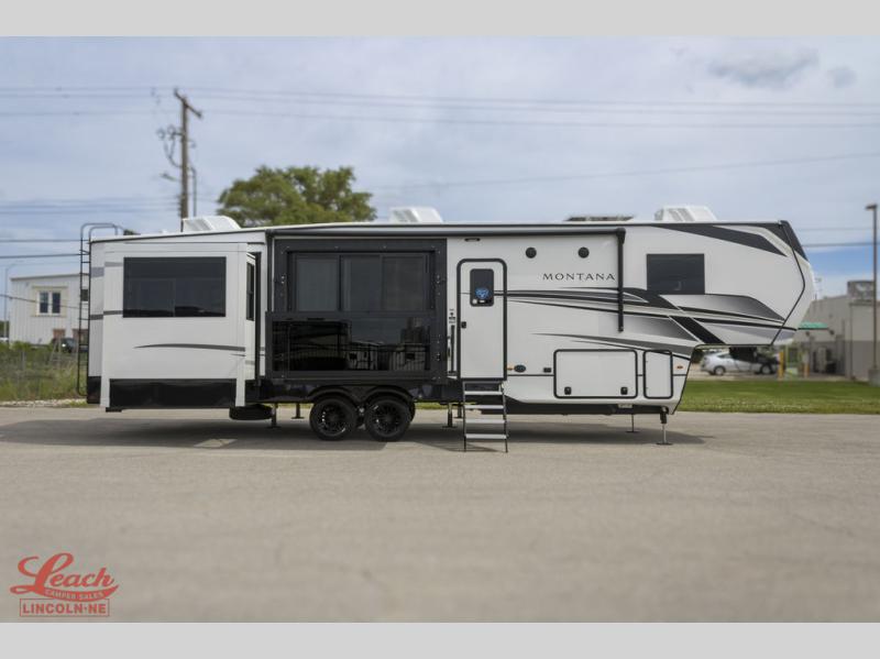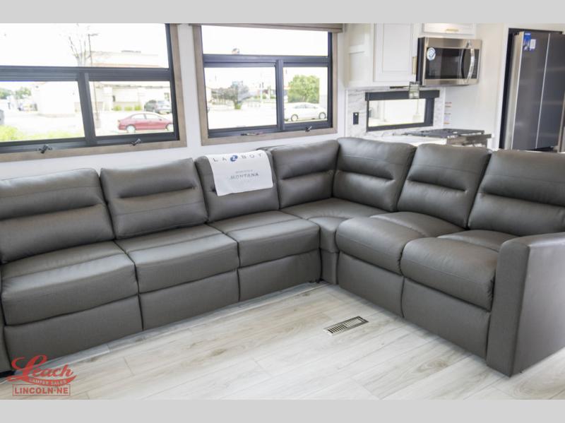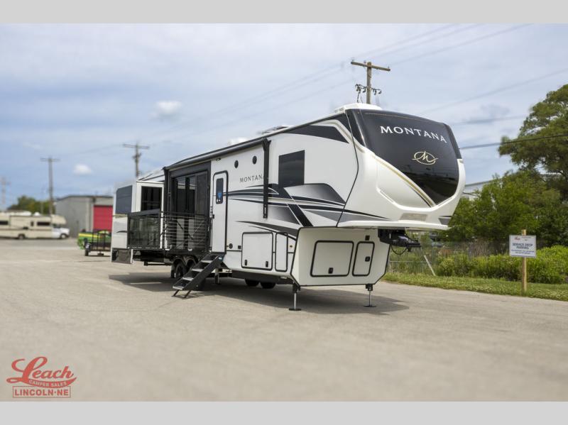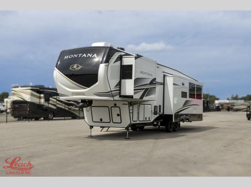 Enjoy luxury, innovation, and the outdoors in any one of Montana's finest fifth wheels. Each set the standard with exceptional features, and exciting factory installed options to provide you a great home on the road. Keystone's exclusive 12" I-beam chassis with z-frame technology has been reengineered to be stronger, lighter and built for "the long haul". A few other construction features you will appreciate include a Road Armor suspension, 2" thick, dual-layered lauan high gloss fiberglass sidewalls, a MaxTurn front cap with KeyShield automotive-grade paint, and a fully walkable roof with an Alpha seamless TPO membrane system. Each feature stylish interiors with two decor choices paired with beautiful hardwood cabinetry, vinyl flooring throughout, central vacuum, plus a La-Z-Boy furniture package for all-around comfort!
