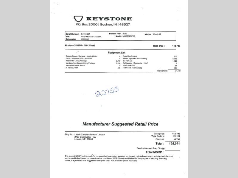 New 2025 Keystone RV Montana 3532SP Fifth Wheel