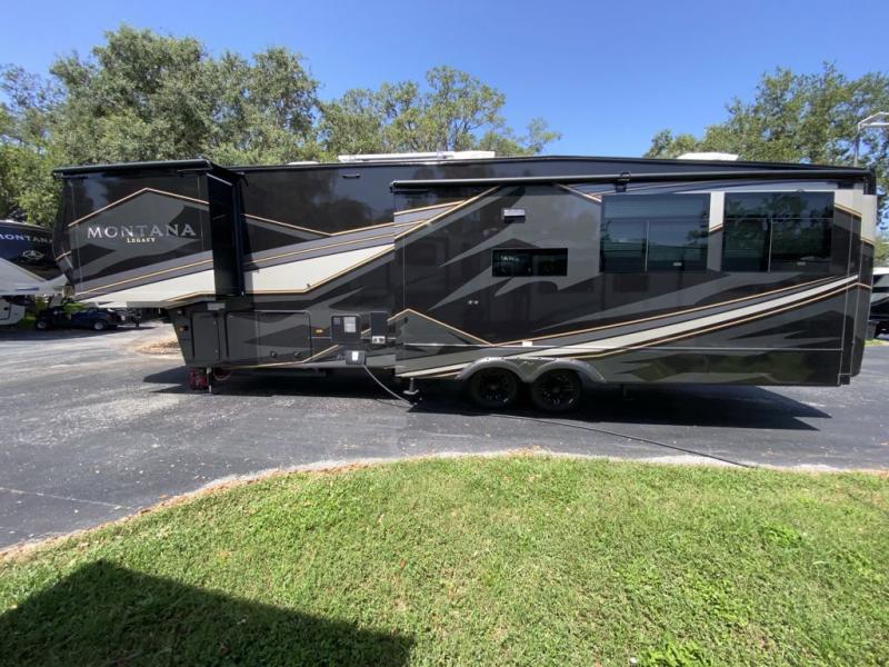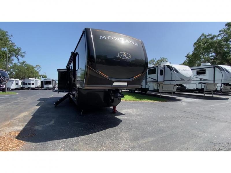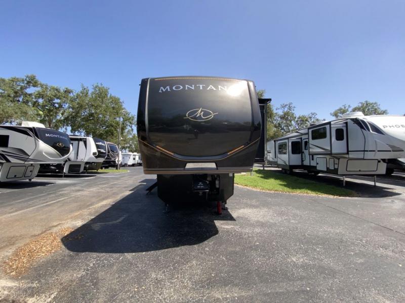 Enjoy luxury, innovation, and the outdoors in any one of Montana's finest fifth wheels. Each set the standard with exceptional features, and exciting factory installed options to provide you a great home on the road. Keystone's exclusive 12" I-beam chassis with z-frame technology has been reengineered to be stronger, lighter and built for "the long haul". A few other construction features you will appreciate include a Road Armor suspension, 2" thick, dual-layered lauan high gloss fiberglass sidewalls, a MaxTurn front cap with KeyShield automotive-grade paint, and a fully walkable roof with an Alpha seamless TPO membrane system. Each feature stylish interiors with two decor choices paired with beautiful hardwood cabinetry, vinyl flooring throughout, central vacuum, plus a La-Z-Boy furniture package for all-around comfort!