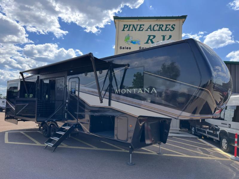 Enjoy luxury, innovation, and the outdoors in any one of Montana's finest fifth wheels. Each set the standard with exceptional features, and exciting factory installed options to provide you a great home on the road. Keystone's exclusive 12" I-beam chassis with z-frame technology has been reengineered to be stronger, lighter and built for "the long haul". A few other construction features you will appreciate include a Road Armor suspension, 2" thick, dual-layered lauan high gloss fiberglass sidewalls, a MaxTurn front cap with KeyShield automotive-grade paint, and a fully walkable roof with an Alpha seamless TPO membrane system. Each feature stylish interiors with two decor choices paired with beautiful hardwood cabinetry, vinyl flooring throughout, central vacuum, plus a La-Z-Boy furniture package for all-around comfort!