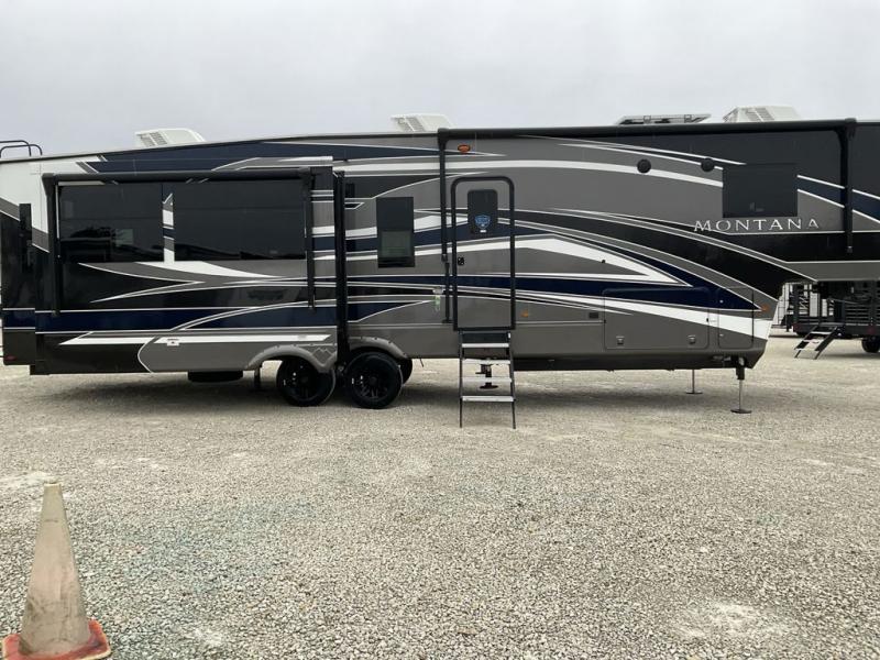 Enjoy luxury, innovation, and the outdoors in any one of Montana's finest fifth wheels. Each set the standard with exceptional features, and exciting factory installed options to provide you a great home on the road. Keystone's exclusive 12" I-beam chassis with z-frame technology has been reengineered to be stronger, lighter and built for "the long haul". A few other construction features you will appreciate include a Road Armor suspension, 2" thick, dual-layered lauan high gloss fiberglass sidewalls, a MaxTurn front cap with KeyShield automotive-grade paint, and a fully walkable roof with an Alpha seamless TPO membrane system. Each feature stylish interiors with two new decor choices paired with beautiful hand-glazed hardwood cabinetry, vinyl flooring throughout, central vacuum, plus a Blade Pure airflow system for clean, quite, and cool air!