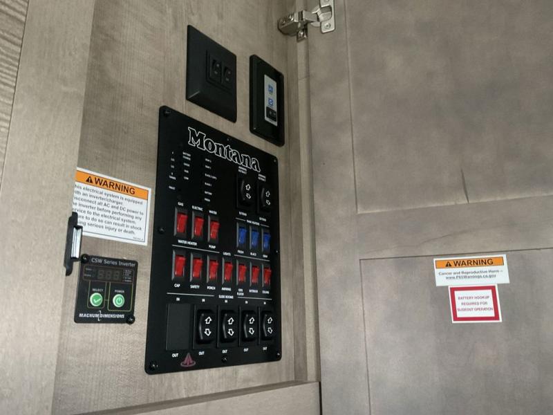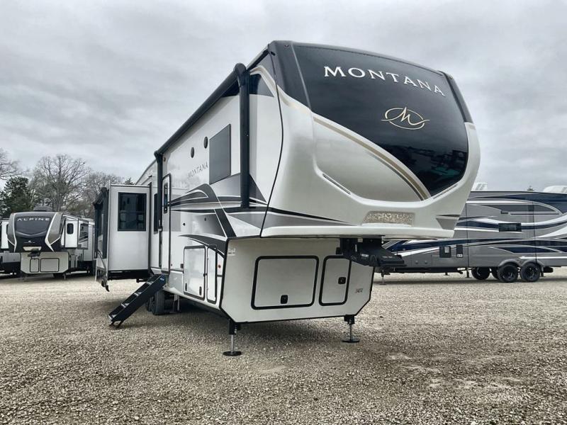Enjoy luxury, innovation, and the outdoors in any one of Montana's finest fifth wheels. Each set the standard with exceptional features, and exciting factory installed options to provide you a great home on the road. Keystone's exclusive 12" I-beam chassis with z-frame technology has been reengineered to be stronger, lighter and built for "the long haul". A few other construction features you will appreciate include a Road Armor suspension, 2" thick, dual-layered lauan high gloss fiberglass sidewalls, a MaxTurn front cap with KeyShield automotive-grade paint, and a fully walkable roof with an Alpha seamless TPO membrane system. Each feature stylish interiors with two new decor choices paired with beautiful hand-glazed hardwood cabinetry, vinyl flooring throughout, central vacuum, plus a Blade Pure airflow system for clean, quite, and cool air!