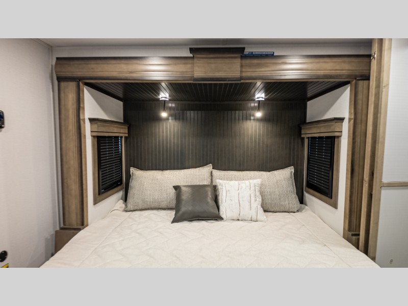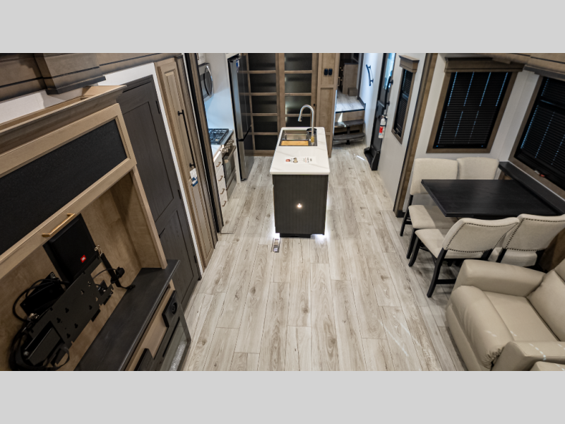 Overview: A modern luxury fifth wheel designed for rugged adventure and comfort. Includes bike garage and rear lounge for active lifestyles.