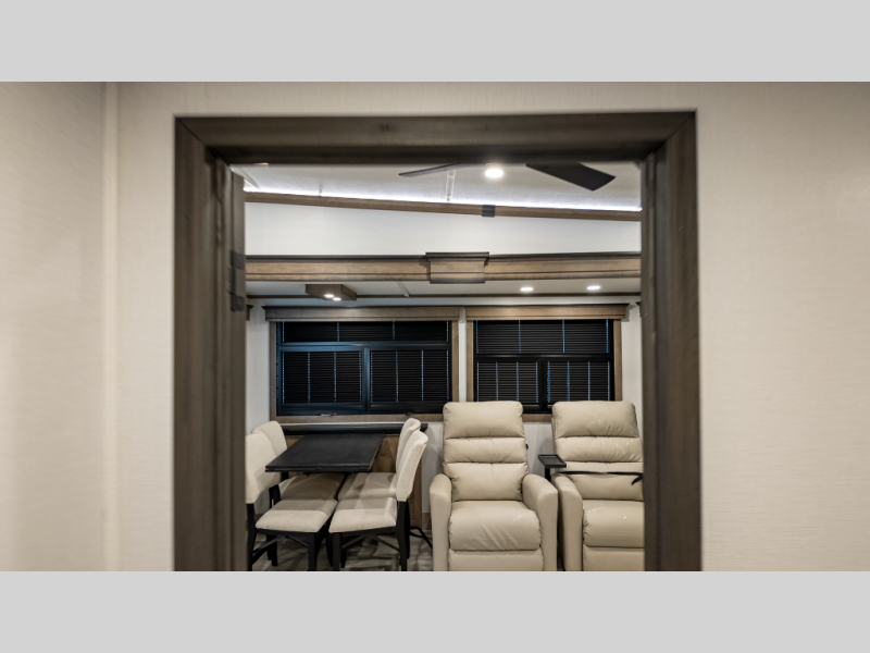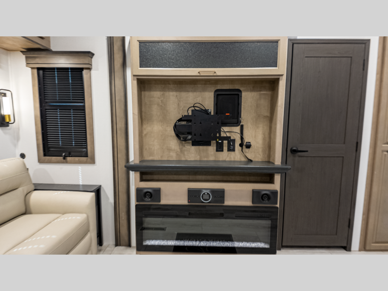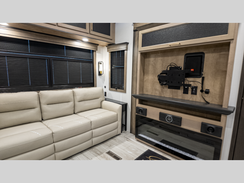 - Rear living with theater seating, fireplace, 50" Smart TV