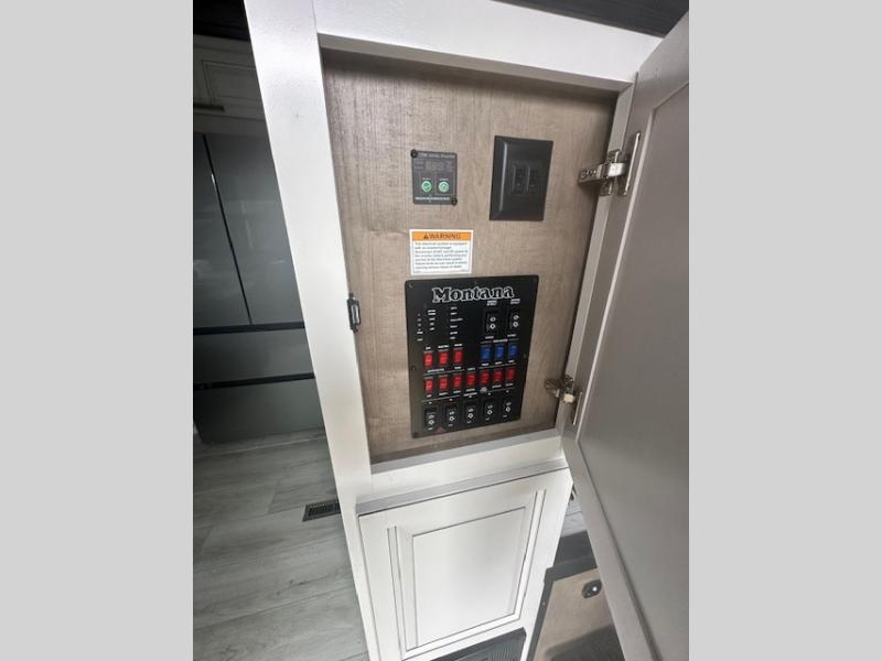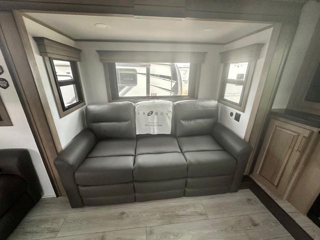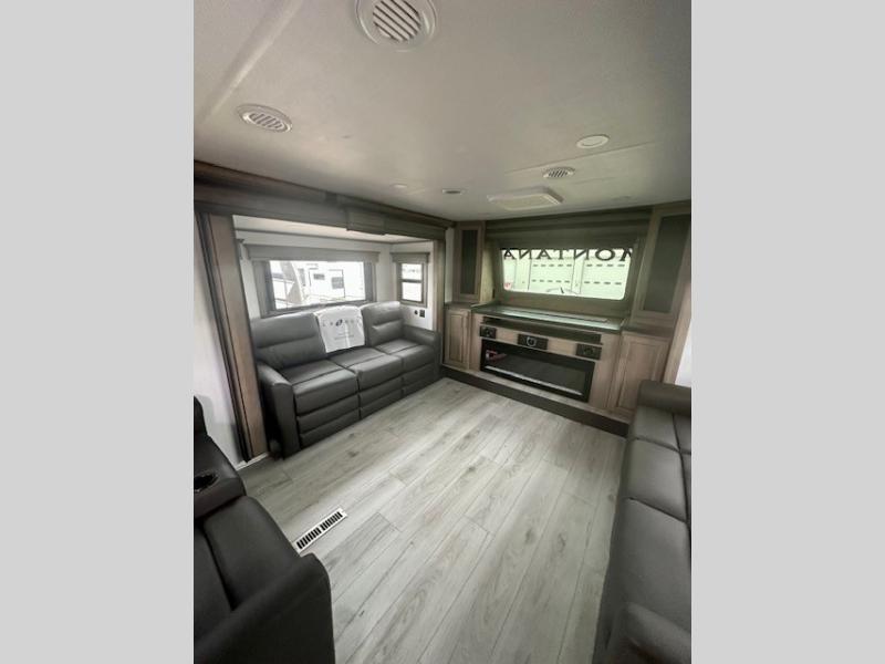 Enjoy luxury, innovation, and the outdoors in any one of Montana's finest fifth wheels. Each set the standard with exceptional features, and exciting factory installed options to provide you a great home on the road. Keystone's exclusive 12" I-beam chassis with z-frame technology has been reengineered to be stronger, lighter and built for "the long haul". A few other construction features you will appreciate include a Road Armor suspension, 2" thick, dual-layered lauan high gloss fiberglass sidewalls, a MaxTurn front cap with KeyShield automotive-grade paint, and a fully walkable roof with an Alpha seamless TPO membrane system. Each feature stylish interiors with two decor choices paired with beautiful hardwood cabinetry, vinyl flooring throughout, central vacuum, plus a La-Z-Boy furniture package for all-around comfort!