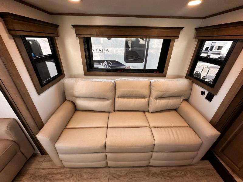Enjoy luxury, innovation, and the outdoors in any one of Montana's finest fifth wheels. Each set the standard with exceptional features, and exciting factory installed options to provide you a great home on the road. Keystone's exclusive 12" I-beam chassis with z-frame technology has been reengineered to be stronger, lighter and built for "the long haul". A few other construction features you will appreciate include a Road Armor suspension, 2" thick, dual-layered lauan high gloss fiberglass sidewalls, a MaxTurn front cap with KeyShield automotive-grade paint, and a fully walkable roof with an Alpha seamless TPO membrane system. Each feature stylish interiors with two new decor choices paired with beautiful hand-glazed hardwood cabinetry, vinyl flooring throughout, central vacuum, plus a Blade Pure airflow system for clean, quite, and cool air!