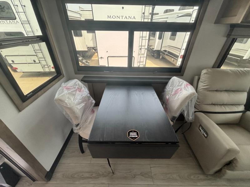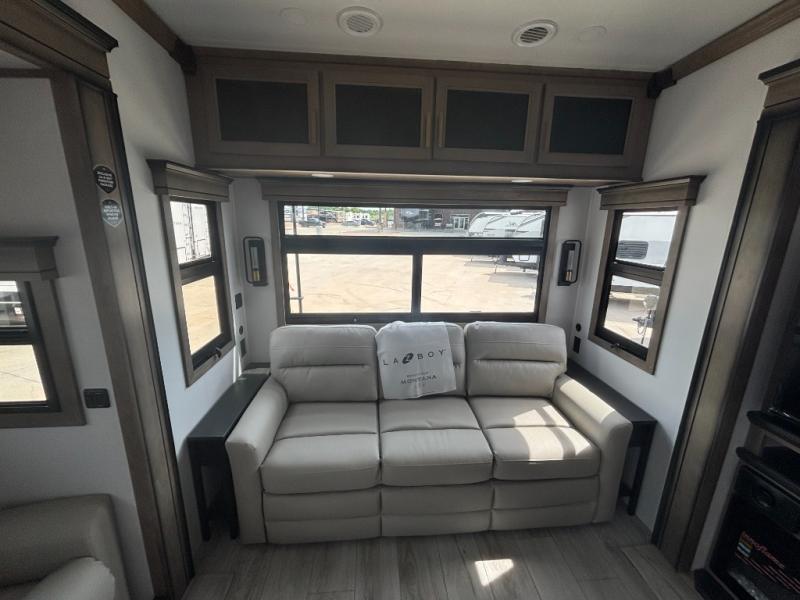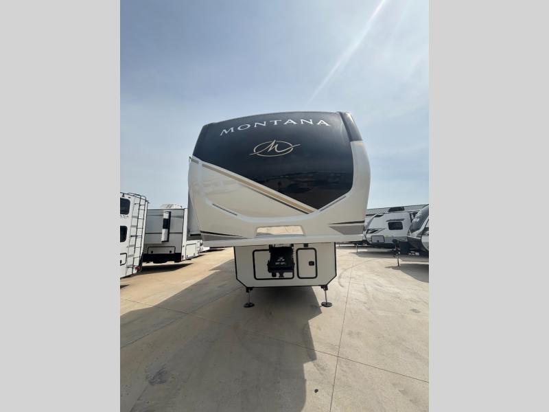 Enjoy luxury, innovation, and the outdoors in any one of Montana's finest fifth wheels. Each set the standard with exceptional features, and exciting factory installed options to provide you a great home on the road. Keystone's exclusive 12" I-beam chassis with z-frame technology has been reengineered to be stronger, lighter and built for "the long haul". A few other construction features you will appreciate include a Road Armor suspension, 2" thick, dual-layered lauan high gloss fiberglass sidewalls, a MaxTurn front cap with KeyShield automotive-grade paint, and a fully walkable roof with an Alpha seamless TPO membrane system. Each feature stylish interiors with two decor choices paired with beautiful hardwood cabinetry, vinyl flooring throughout, central vacuum, plus a La-Z-Boy furniture package for all-around comfort!