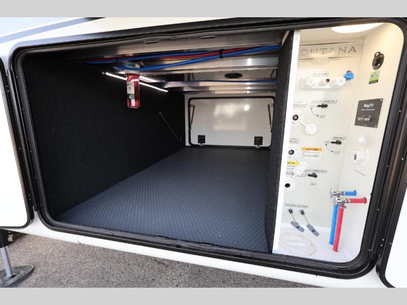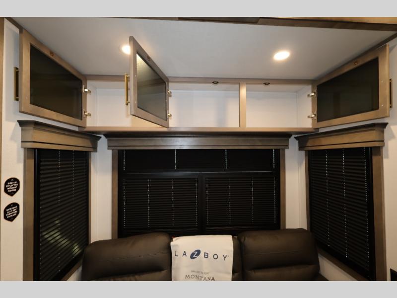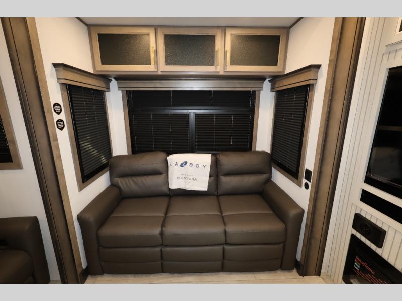 Enjoy luxury, innovation, and the outdoors in any one of Montana's finest fifth wheels. Each set the standard with exceptional features, and exciting factory installed options to provide you a great home on the road. Keystone's exclusive 12" I-beam chassis with z-frame technology has been reengineered to be stronger, lighter and built for "the long haul". A few other construction features you will appreciate include a Road Armor suspension, 2" thick, dual-layered lauan high gloss fiberglass sidewalls, a MaxTurn front cap with KeyShield automotive-grade paint, and a fully walkable roof with an Alpha seamless TPO membrane system. Each feature stylish interiors with two new decor choices paired with beautiful hand-glazed hardwood cabinetry, vinyl flooring throughout, central vacuum, plus a Blade Pure airflow system for clean, quite, and cool air!