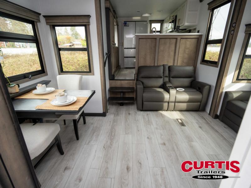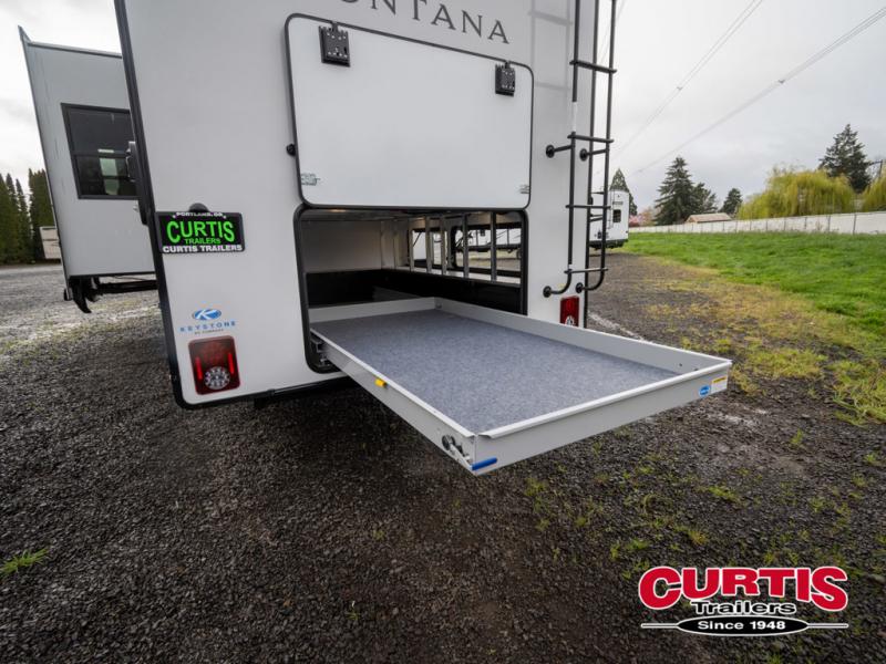 Enjoy luxury, innovation, and the outdoors in any one of Montana's finest fifth wheels. Each set the standard with exceptional features, and exciting factory installed options to provide you a great home on the road. Keystone's exclusive 12" I-beam chassis with z-frame technology has been reengineered to be stronger, lighter and built for "the long haul". A few other construction features you will appreciate include a Road Armor suspension, 2" thick, dual-layered lauan high gloss fiberglass sidewalls, a MaxTurn front cap with KeyShield automotive-grade paint, and a fully walkable roof with an Alpha seamless TPO membrane system. Each feature stylish interiors with two decor choices paired with beautiful hardwood cabinetry, vinyl flooring throughout, central vacuum, plus a La-Z-Boy furniture package for all-around comfort!