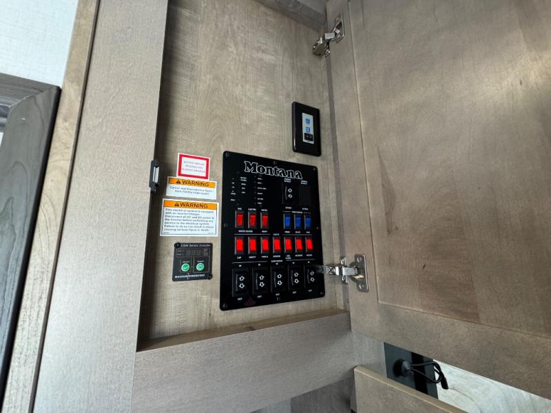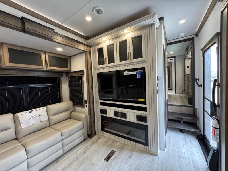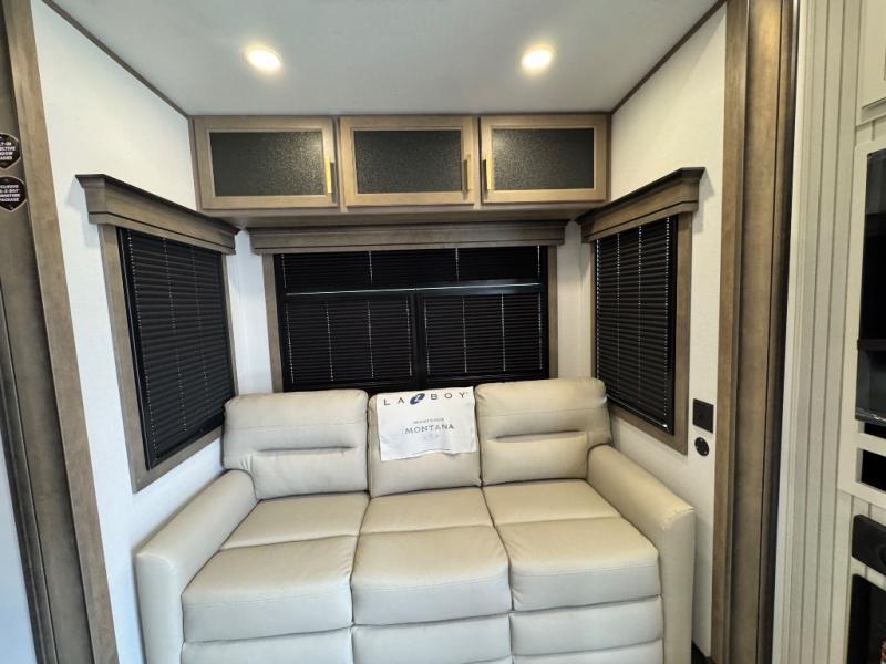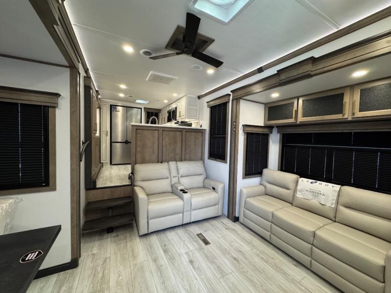 Enjoy luxury, innovation, and the outdoors in any one of Montana's finest fifth wheels. Each set the standard with exceptional features, and exciting factory installed options to provide you a great home on the road. Keystone's exclusive 12" I-beam chassis with z-frame technology has been reengineered to be stronger, lighter and built for "the long haul". A few other construction features you will appreciate include a Road Armor suspension, 2" thick, dual-layered lauan high gloss fiberglass sidewalls, a MaxTurn front cap with KeyShield automotive-grade paint, and a fully walkable roof with an Alpha seamless TPO membrane system. Each feature stylish interiors with two decor choices paired with beautiful hardwood cabinetry, vinyl flooring throughout, central vacuum, plus a La-Z-Boy furniture package for all-around comfort!