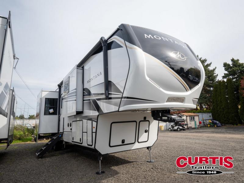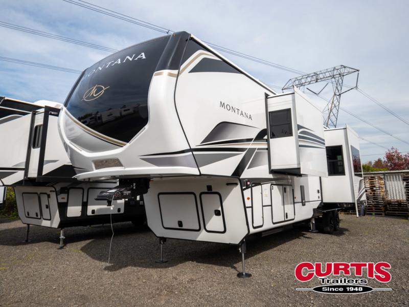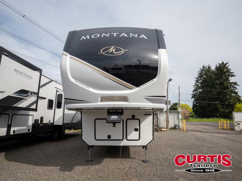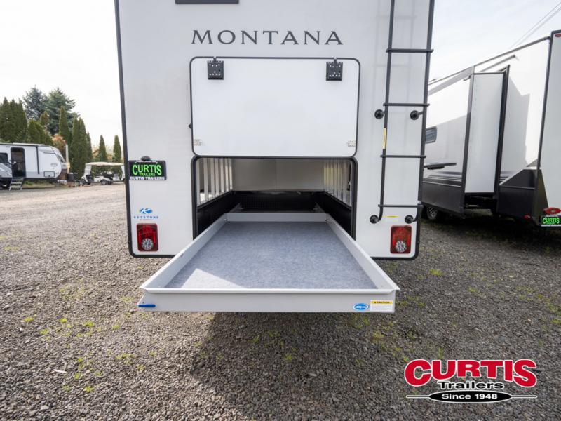 Enjoy luxury, innovation, and the outdoors in any one of Montana's finest fifth wheels. Each set the standard with exceptional features, and exciting factory installed options to provide you a great home on the road. Keystone's exclusive 12" I-beam chassis with z-frame technology has been reengineered to be stronger, lighter and built for "the long haul". A few other construction features you will appreciate include a Road Armor suspension, 2" thick, dual-layered lauan high gloss fiberglass sidewalls, a MaxTurn front cap with KeyShield automotive-grade paint, and a fully walkable roof with an Alpha seamless TPO membrane system. Each feature stylish interiors with two decor choices paired with beautiful hardwood cabinetry, vinyl flooring throughout, central vacuum, plus a La-Z-Boy furniture package for all-around comfort!