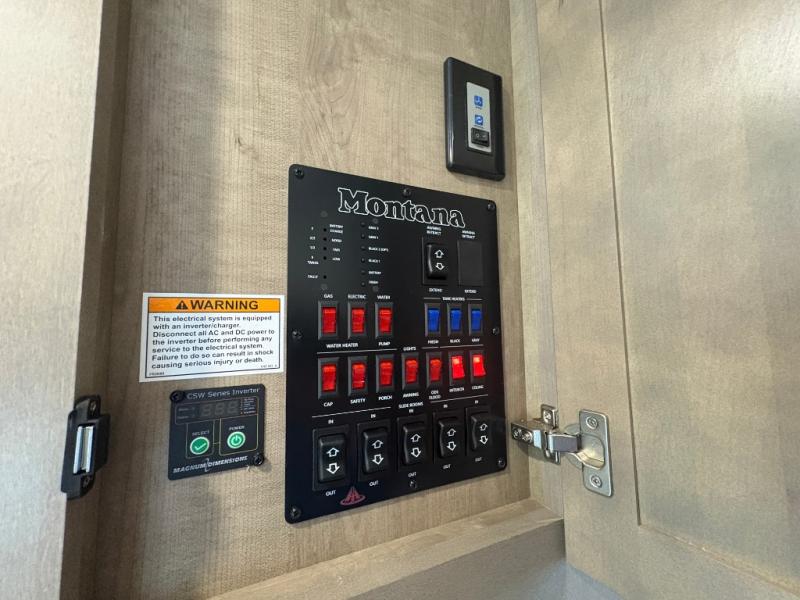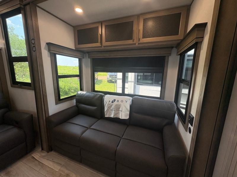 Enjoy luxury, innovation, and the outdoors in any one of Montana's finest fifth wheels. Each set the standard with exceptional features, and exciting factory installed options to provide you a great home on the road. Keystone's exclusive 12" I-beam chassis with z-frame technology has been reengineered to be stronger, lighter and built for "the long haul". A few other construction features you will appreciate include a Road Armor suspension, 2" thick, dual-layered lauan high gloss fiberglass sidewalls, a MaxTurn front cap with KeyShield automotive-grade paint, and a fully walkable roof with an Alpha seamless TPO membrane system. Each feature stylish interiors with two decor choices paired with beautiful hardwood cabinetry, vinyl flooring throughout, central vacuum, plus a La-Z-Boy furniture package for all-around comfort!