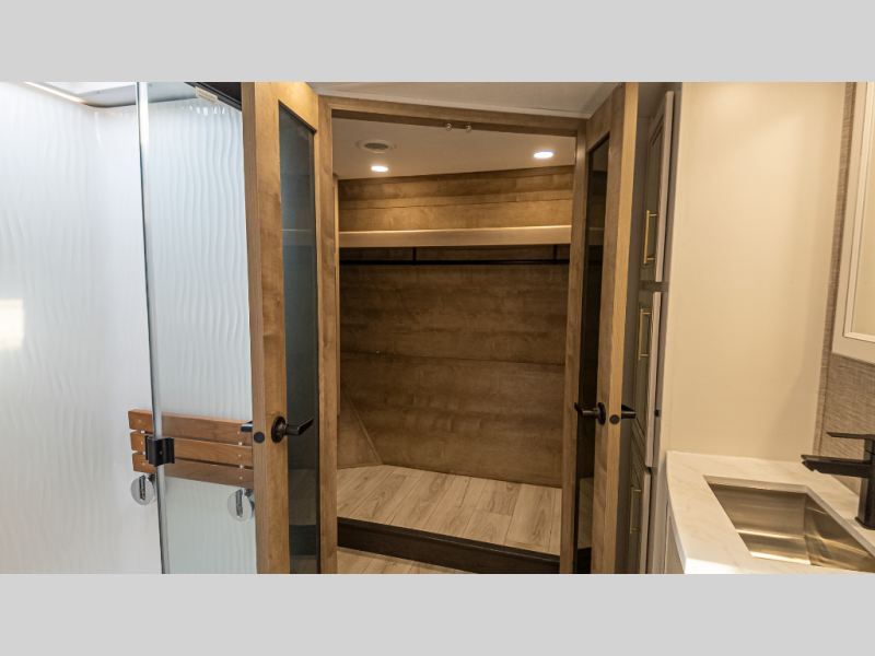 - Five slides, bath-and-a-half, king bed & walk-in wardrobe with washer/dryer prep