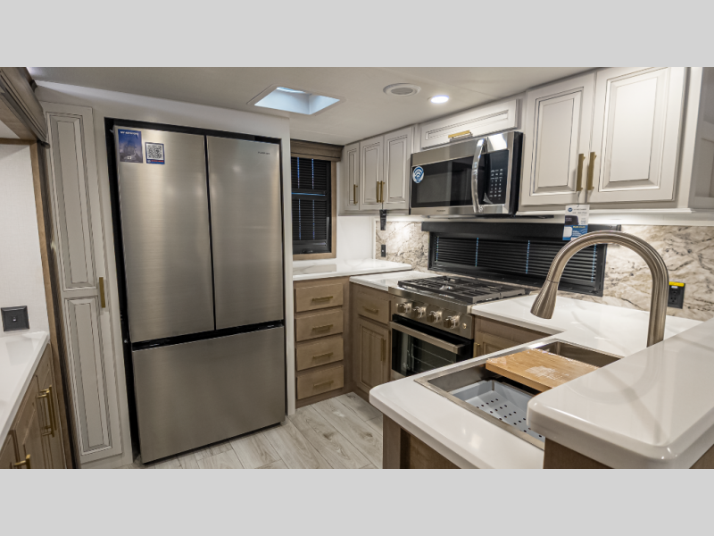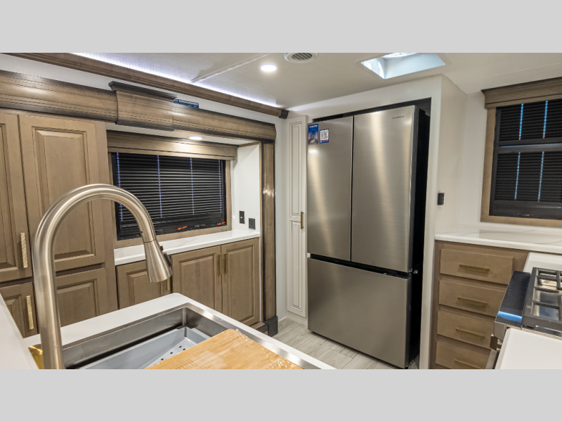 - 18 cu ft residential fridge, convection microwave, chef’s faucet & massive pantry