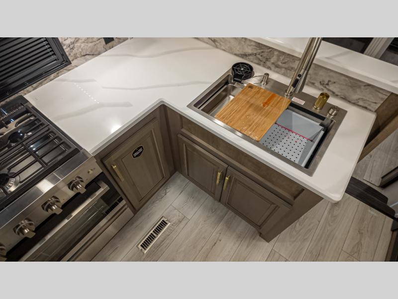 A: The 42-ft Montana 3901RK delivers chef-grade rear kitchen, bath-and-a-half, front master suite—and it’s still hundreds below MSRP.