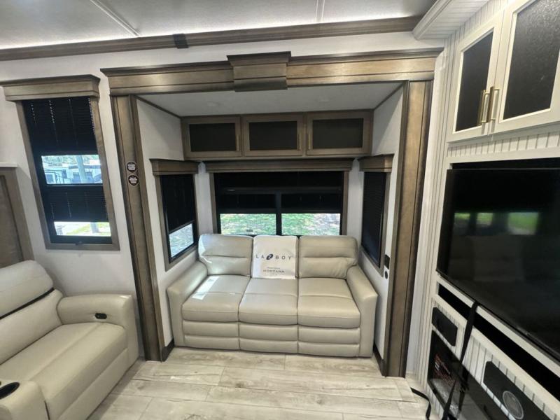Enjoy luxury, innovation, and the outdoors in any one of Montana's finest fifth wheels. Each set the standard with exceptional features, and exciting factory installed options to provide you a great home on the road. Keystone's exclusive 12" I-beam chassis with z-frame technology has been reengineered to be stronger, lighter and built for "the long haul". A few other construction features you will appreciate include a Road Armor suspension, 2" thick, dual-layered lauan high gloss fiberglass sidewalls, a MaxTurn front cap with KeyShield automotive-grade paint, and a fully walkable roof with an Alpha seamless TPO membrane system. Each feature stylish interiors with two decor choices paired with beautiful hardwood cabinetry, vinyl flooring throughout, central vacuum, plus a La-Z-Boy furniture package for all-around comfort!
