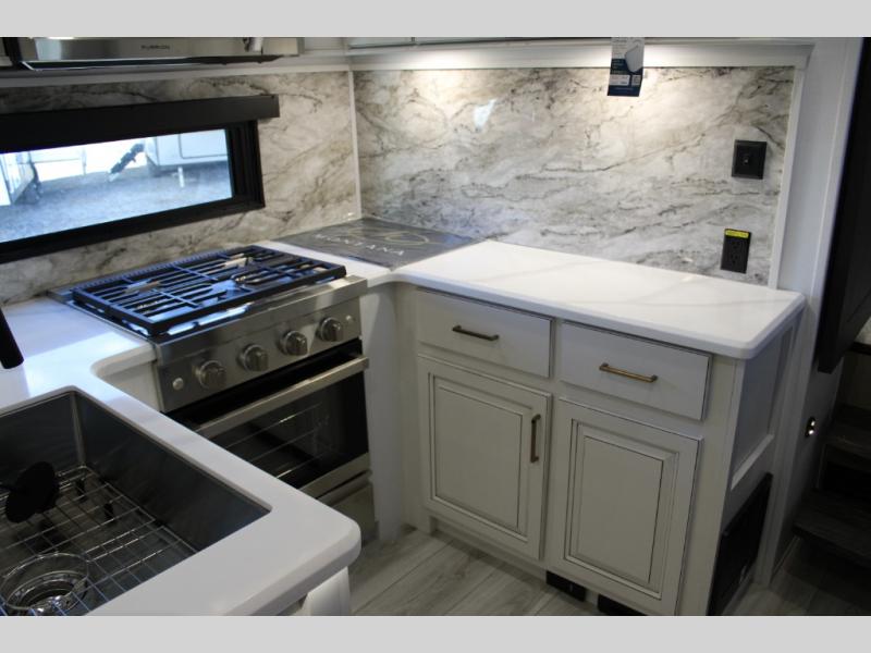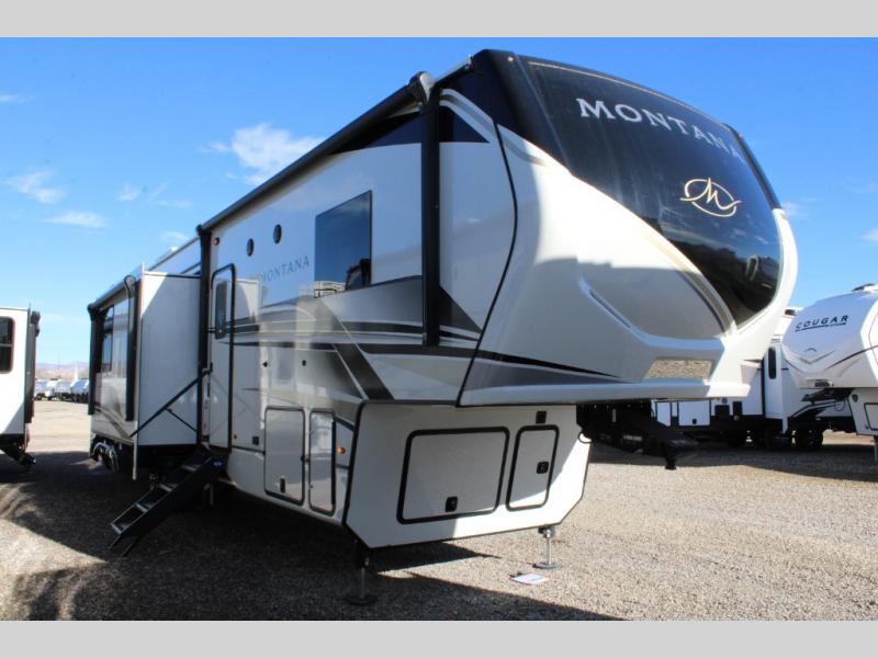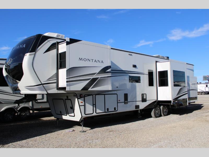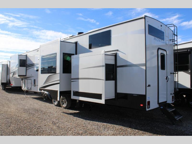 Enjoy luxury, innovation, and the outdoors in any one of Montana's finest fifth wheels. Each set the standard with exceptional features, and exciting factory installed options to provide you a great home on the road. Keystone's exclusive 12" I-beam chassis with z-frame technology has been reengineered to be stronger, lighter, and built for "the long haul". A few other construction features you will appreciate include a Road Armor suspension, 2" thick, dual-layered lauan high gloss fiberglass sidewalls, a MaxTurn front cap with KeyShield automotive-grade paint, and a fully walkable roof with an Alpha seamless TPO membrane system. Each feature stylish interiors with two new decor choices paired with beautiful hand-glazed hardwood cabinetry, vinyl flooring throughout, central vacuum, plus a Blade Pure airflow system for clean, quite, and cool air!