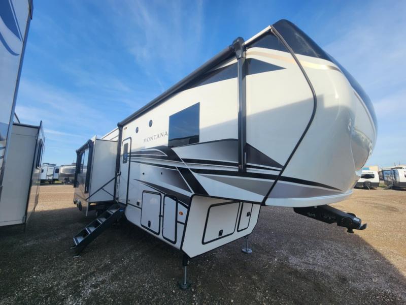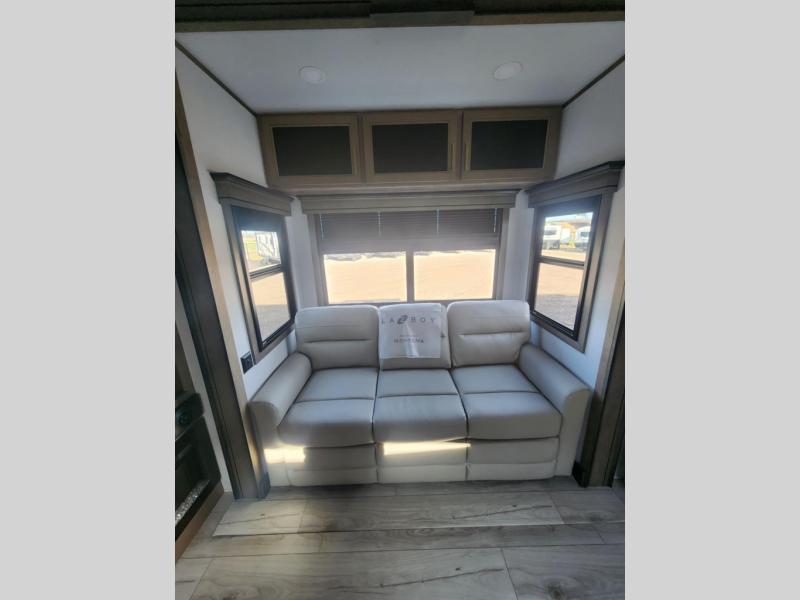 Enjoy luxury, innovation, and the outdoors in any one of Montana's finest fifth wheels. Each set the standard with exceptional features, and exciting factory installed options to provide you a great home on the road. Keystone's exclusive 12" I-beam chassis with z-frame technology has been reengineered to be stronger, lighter, and built for "the long haul". A few other construction features you will appreciate include a Road Armor suspension, 2" thick, dual-layered lauan high gloss fiberglass sidewalls, a MaxTurn front cap with KeyShield automotive-grade paint, and a fully walkable roof with an Alpha seamless TPO membrane system. Each feature stylish interiors with two decor choices paired with beautiful hardwood cabinetry, vinyl flooring throughout, central vacuum, plus a La-Z-Boy furniture package for all-around comfort!