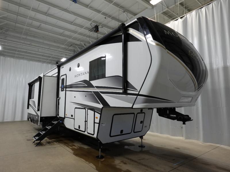 Enjoy luxury, innovation, and the outdoors in any one of Montana's finest fifth wheels. Each set the standard with exceptional features, and exciting factory installed options to provide you a great home on the road. Keystone's exclusive 12" I-beam chassis with z-frame technology has been reengineered to be stronger, lighter, and built for "the long haul". A few other construction features you will appreciate include a Road Armor suspension, 2" thick, dual-layered lauan high gloss fiberglass sidewalls, a MaxTurn front cap with KeyShield automotive-grade paint, and a fully walkable roof with an Alpha seamless TPO membrane system.