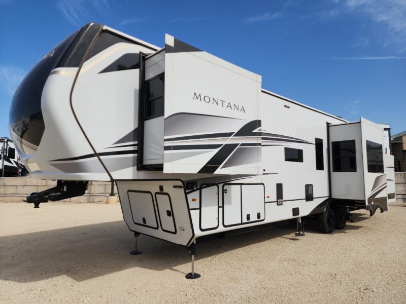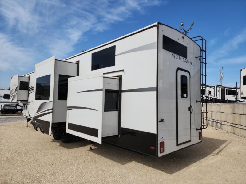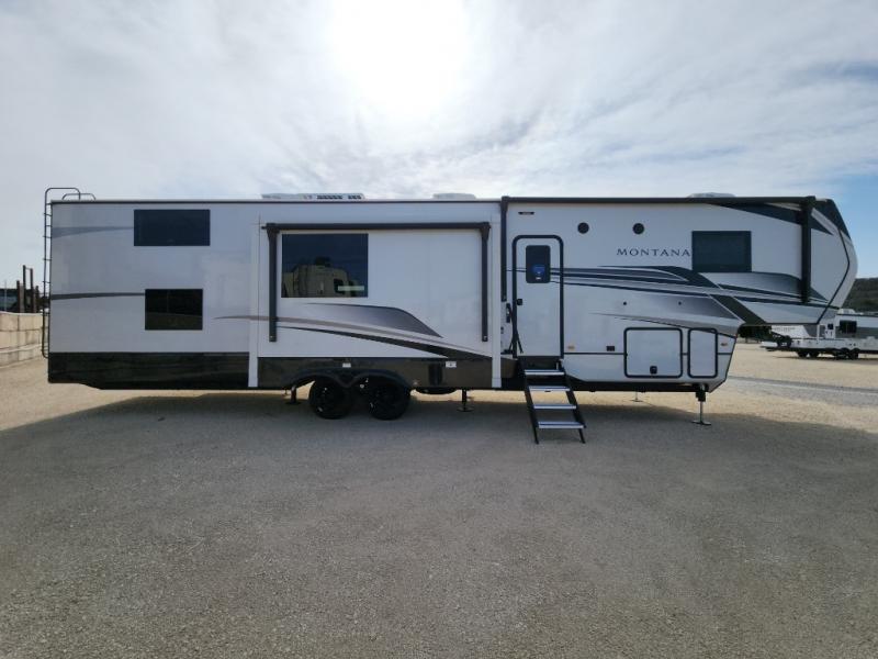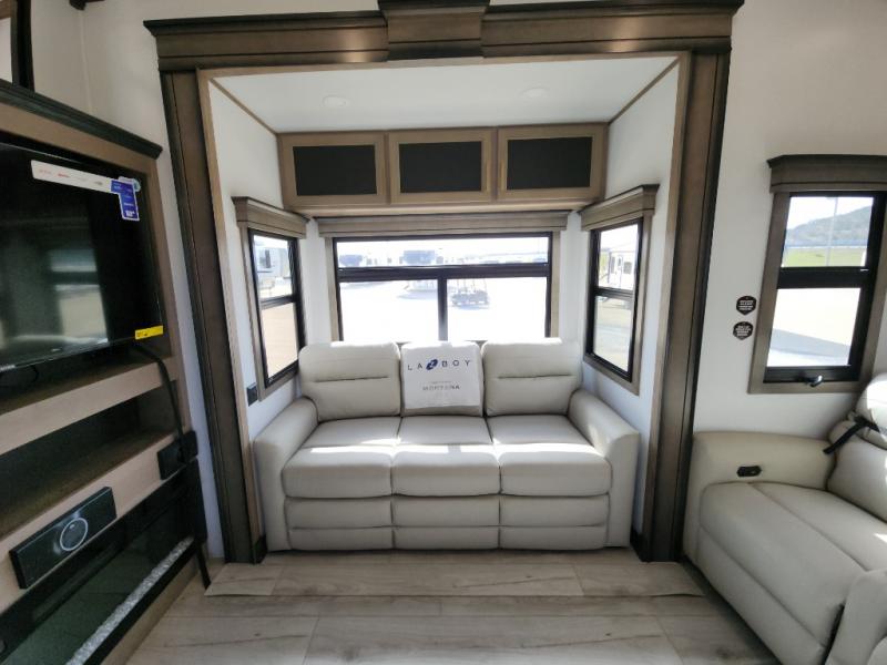 Enjoy luxury, innovation, and the outdoors in any one of Montana's finest fifth wheels. Each set the standard with exceptional features, and exciting factory installed options to provide you a great home on the road. Keystone's exclusive 12" I-beam chassis with z-frame technology has been reengineered to be stronger, lighter, and built for "the long haul". A few other construction features you will appreciate include a Road Armor suspension, 2" thick, dual-layered lauan high gloss fiberglass sidewalls, a MaxTurn front cap with KeyShield automotive-grade paint, and a fully walkable roof with an Alpha seamless TPO membrane system. Each feature stylish interiors with two decor choices paired with beautiful hardwood cabinetry, vinyl flooring throughout, central vacuum, plus a La-Z-Boy furniture package for all-around comfort!