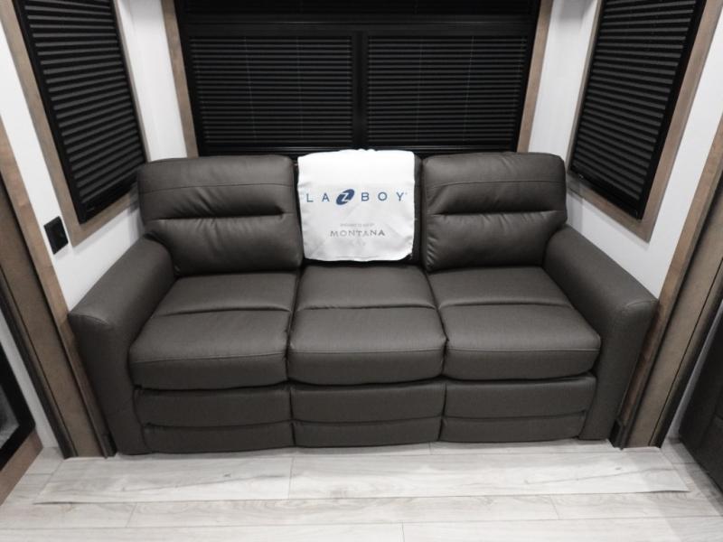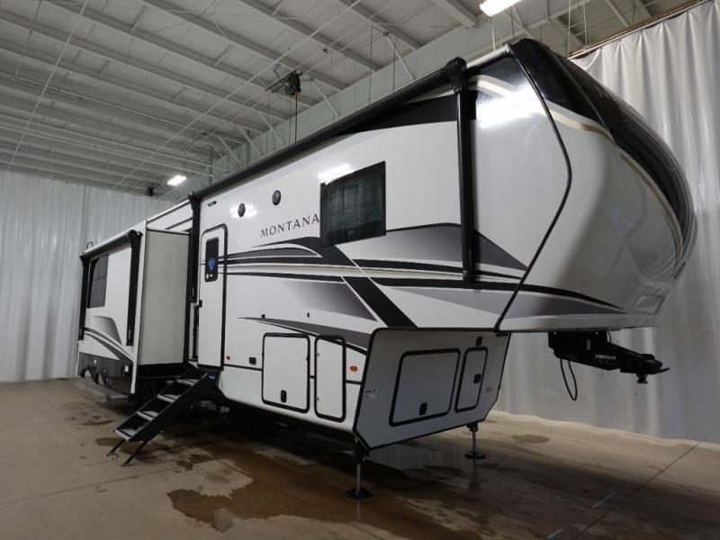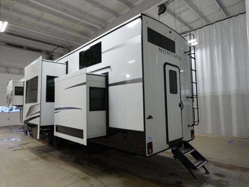 Enjoy luxury, innovation, and the outdoors in any one of Montana's finest fifth wheels. Each set the standard with exceptional features, and exciting factory installed options to provide you a great home on the road. Keystone's exclusive 12" I-beam chassis with z-frame technology has been reengineered to be stronger, lighter, and built for "the long haul". A few other construction features you will appreciate include a Road Armor suspension, 2" thick, dual-layered lauan high gloss fiberglass sidewalls, a MaxTurn front cap with KeyShield automotive-grade paint, and a fully walkable roof with an Alpha seamless TPO membrane system.