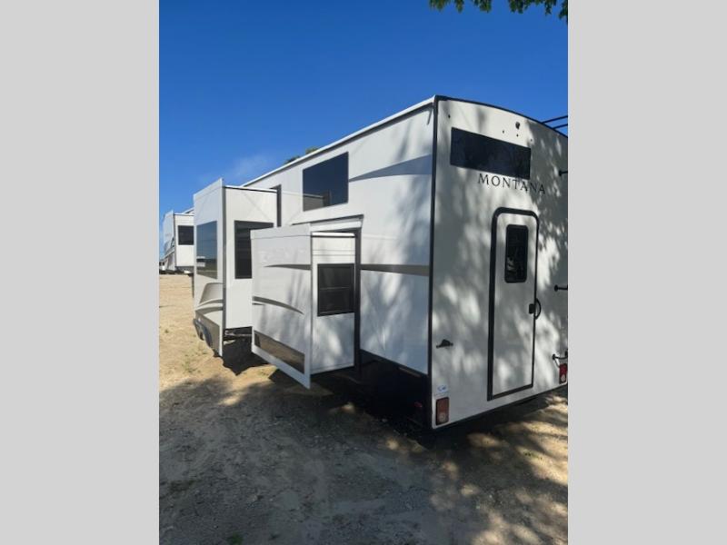 Enjoy luxury, innovation, and the outdoors in any one of Montana's finest fifth wheels. Each set the standard with exceptional features, and exciting factory installed options to provide you a great home on the road. Keystone's exclusive 12" I-beam chassis with z-frame technology has been reengineered to be stronger, lighter, and built for "the long haul". A few other construction features you will appreciate include a Road Armor suspension, 2" thick, dual-layered lauan high gloss fiberglass sidewalls, a MaxTurn front cap with KeyShield automotive-grade paint, and a fully walkable roof with an Alpha seamless TPO membrane system. Each feature stylish interiors with two decor choices paired with beautiful hardwood cabinetry, vinyl flooring throughout, central vacuum, plus a La-Z-Boy furniture package for all-around comfort!