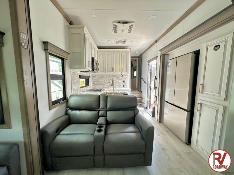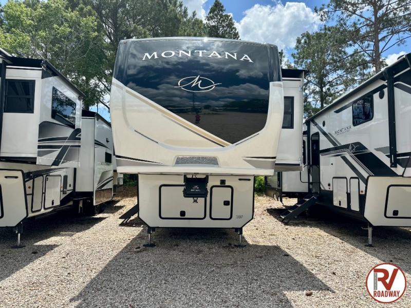 Enjoy luxury, innovation, and the outdoors in any one of Montana's finest fifth wheels. Each set the standard with exceptional features, and exciting factory installed options to provide you a great home on the road. Keystone's exclusive 12" I-beam chassis with z-frame technology has been reengineered to be stronger, lighter, and built for "the long haul". A few other construction features you will appreciate include a Road Armor suspension, 2" thick, dual-layered lauan high gloss fiberglass sidewalls, a MaxTurn front cap with KeyShield automotive-grade paint, and a fully walkable roof with an Alpha seamless TPO membrane system. Each feature stylish interiors with two decor choices paired with beautiful hardwood cabinetry, vinyl flooring throughout, central vacuum, plus a La-Z-Boy furniture package for all-around comfort!
