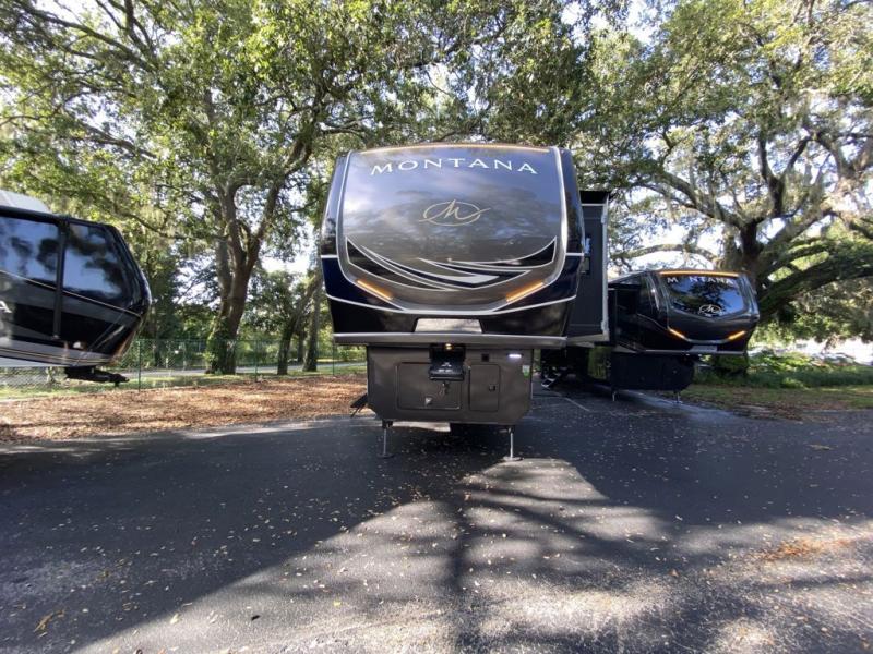 Enjoy luxury, innovation, and the outdoors in any one of Montana's finest fifth wheels. Each set the standard with exceptional features, and exciting factory installed options to provide you a great home on the road. Keystone's exclusive 12" I-beam chassis with z-frame technology has been reengineered to be stronger, lighter, and built for "the long haul". A few other construction features you will appreciate include a Road Armor suspension, 2" thick, dual-layered lauan high gloss fiberglass sidewalls, a MaxTurn front cap with KeyShield automotive-grade paint, and a fully walkable roof with an Alpha seamless TPO membrane system. Each feature stylish interiors with two decor choices paired with beautiful hardwood cabinetry, vinyl flooring throughout, central vacuum, plus a La-Z-Boy furniture package for all-around comfort!