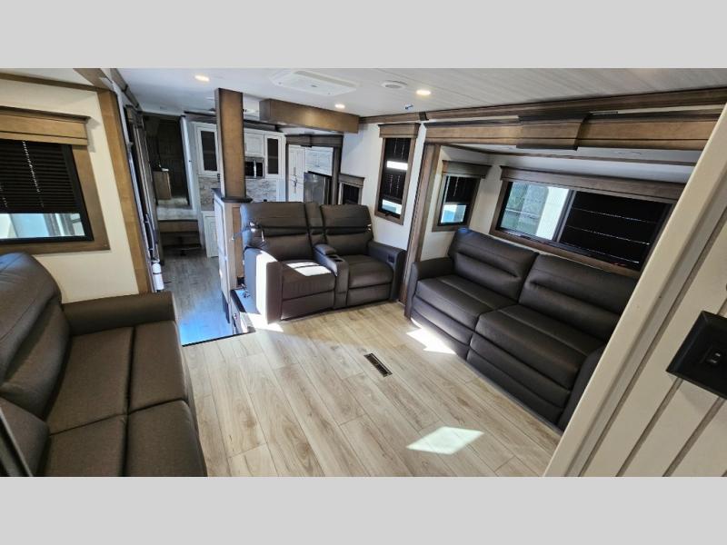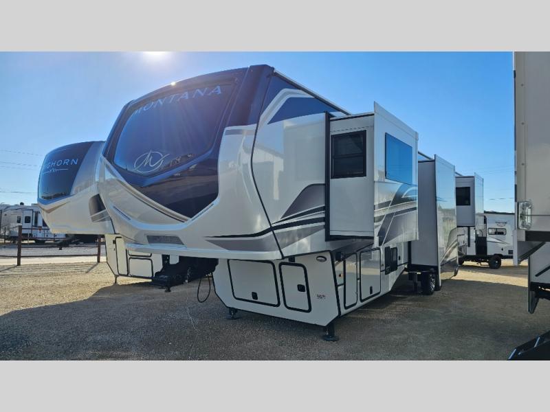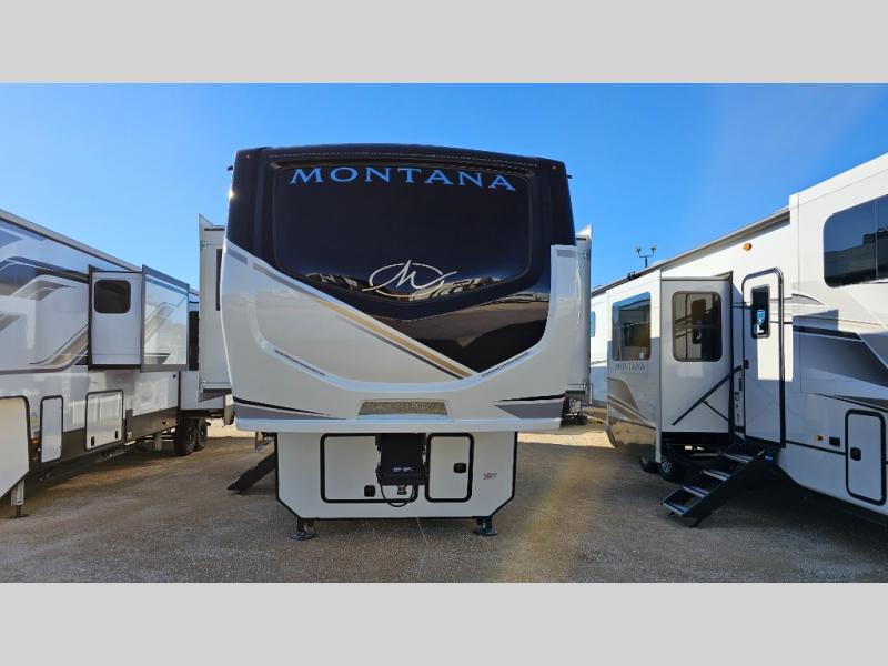 Enjoy luxury, innovation, and the outdoors in any one of Montana's finest fifth wheels. Each set the standard with exceptional features, and exciting factory installed options to provide you a great home on the road. Keystone's exclusive 12" I-beam chassis with z-frame technology has been reengineered to be stronger, lighter and built for "the long haul". A few other construction features you will appreciate include a Road Armor suspension, 2" thick, dual-layered lauan high gloss fiberglass sidewalls, a MaxTurn front cap with KeyShield automotive-grade paint, and a fully walkable roof with an Alpha seamless TPO membrane system. Each feature stylish interiors with two new decor choices paired with beautiful hand-glazed hardwood cabinetry, vinyl flooring throughout, central vacuum, plus a Blade Pure airflow system for clean, quite, and cool air!