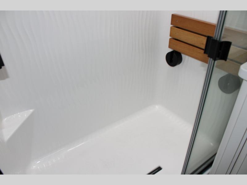 - 48” x 30” fiberglass shower with seat and skylight for natural light and extra headroom.