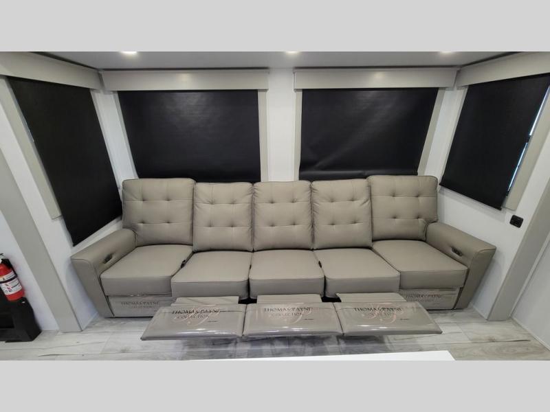 Live the high life with a Keystone Montana High Country fifth wheel! You'll have all the luxury you need with these units. They come with a Road Armor™ shock absorbing hitch pin, a MaxTurn™ front cap with KeyShield™ automotive-grade paint, a fully walkable roof with Alpha seamless TPO membrane system, and an insulated underbelly with forced hot air and electric tank heaters. The Road Armor™ suspension has 360° vibration control for a smooth ride, and the Ground Control® four-point electric auto-leveling with hitch memory will make set-up quite easy. The interior is elegantly appointed with the Thomas Payne Collection furniture, hardwood decorative slide-out fascia, Beauflor® vinyl throughout with Syntec® woven flooring in main slide outs, accent crown molding, and Sandstone Maple cabinetry.