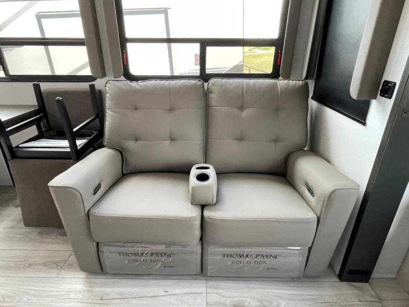 Live the high life with a Keystone Montana High Country fifth wheel! You'll have all the luxury you need with these units. They come with a Road Armor™ shock absorbing hitch pin, a MaxTurn™ front cap with KeyShield™ automotive-grade paint, a fully walkable roof with Alpha seamless TPO membrane system, and an insulated underbelly with forced hot air and electric tank heaters. The Road Armor™ suspension has 360° vibration control for a smooth ride, and the Ground Control® four-point electric auto-leveling with hitch memory will make set-up quite easy. The interior is elegantly appointed with the Thomas Payne Collection furniture, hardwood decorative slide-out fascia, Beauflor® vinyl throughout with Syntec® woven flooring in main slide outs, accent crown molding, and Sandstone Maple cabinetry.