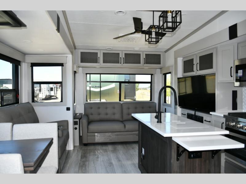 - Opposing Slides: The dual-slide layout in the main living area creates a roomy, open space for relaxing and entertaining.
