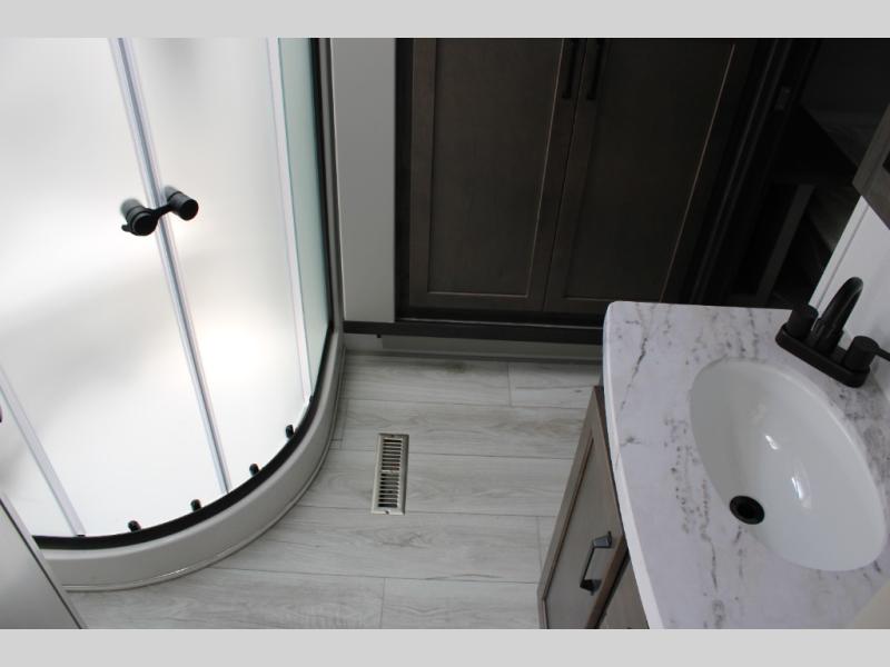 Live the high life with a Keystone Montana High Country fifth wheel! You'll have all the luxury you need with these units. They come with a Road Armor™ shock absorbing hitch pin, a MaxTurn™ front cap with KeyShield™ automotive-grade paint, a fully walkable roof with Alpha seamless TPO membrane system, and an insulated underbelly with forced hot air and electric tank heaters. The Road Armor™ suspension has 360° vibration control for a smooth ride, and the Ground Control® four-point electric auto-leveling with hitch memory will make set-up quite easy. The interior is elegantly appointed with the Thomas Payne Collection furniture, hardwood decorative slide-out fascia, Beauflor® vinyl throughout with Syntec® woven flooring in main slide outs, accent crown molding, and Sandstone Maple cabinetry.