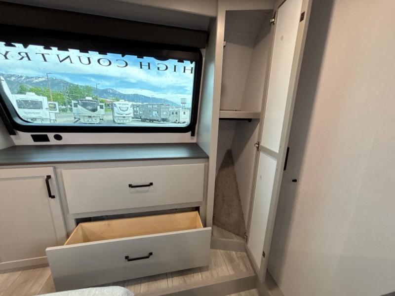Live the high life with a Keystone Montana High Country fifth wheel! You'll have all the luxury you need with these units. They come with a Road Armor™ shock absorbing hitch pin, a MaxTurn™ front cap with KeyShield™ automotive-grade paint, a fully walkable roof with Alpha seamless TPO membrane system, and an insulated underbelly with forced hot air and electric tank heaters. The Road Armor™ suspension has 360° vibration control for a smooth ride, and the Ground Control® four-point electric auto-leveling with hitch memory will make set-up quite easy. The interior is elegantly appointed with the Thomas Payne Collection furniture, hardwood decorative slide-out fascia, Beauflor® vinyl throughout with Syntec® woven flooring in main slide outs, accent crown molding, and Sandstone Maple cabinetry.