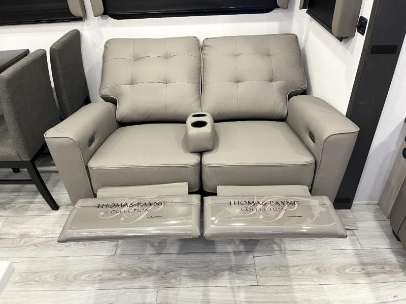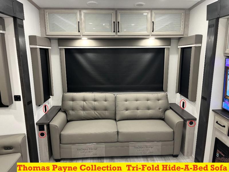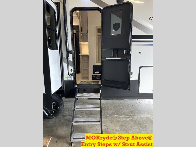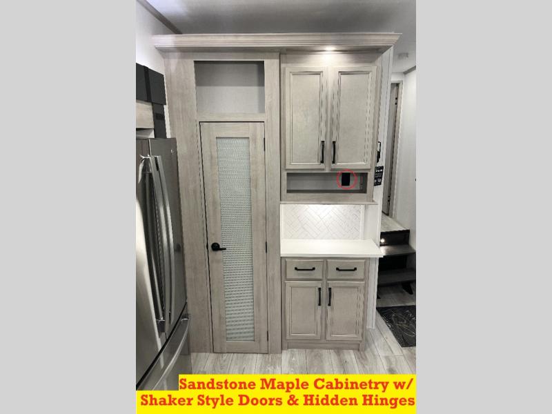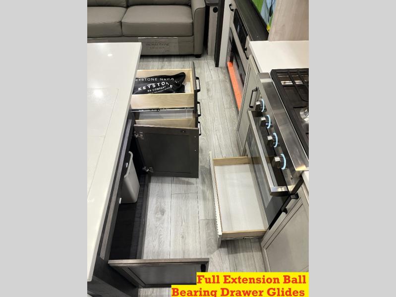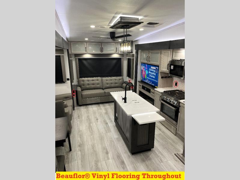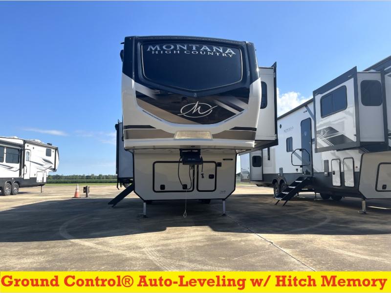 Live the high life with a Keystone Montana High Country fifth wheel! You'll have all the luxury you need with these units. They come with a Road Armor™ shock absorbing hitch pin, a MaxTurn™ front cap with KeyShield™ automotive-grade paint, a fully walkable roof with Alpha seamless TPO membrane system, and an insulated underbelly with forced hot air and electric tank heaters. The Road Armor™ suspension has 360° vibration control for a smooth ride, and the Ground Control® four-point electric auto-leveling with hitch memory will make set-up quite easy. The interior is elegantly appointed with the Thomas Payne Collection furniture, hardwood decorative slide-out fascia, Beauflor® vinyl throughout with Syntec® woven flooring in main slide outs, accent crown molding, and Sandstone Maple cabinetry.
