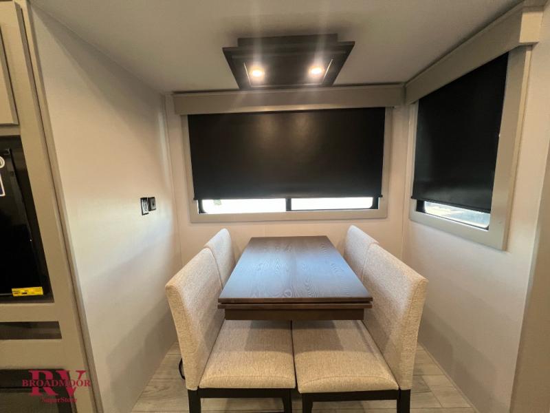 Optional Equipment Installed On This Unit: High Country Residential Living Package, High Country Four Season Living Package, 2nd Power Awning, Automatic Leveling System, Road Armor Pin Box, 2" Towing Hitch, Solar Flex Discover, Free Standing Dinette and Chairs, Power Vent Bathroom Fan