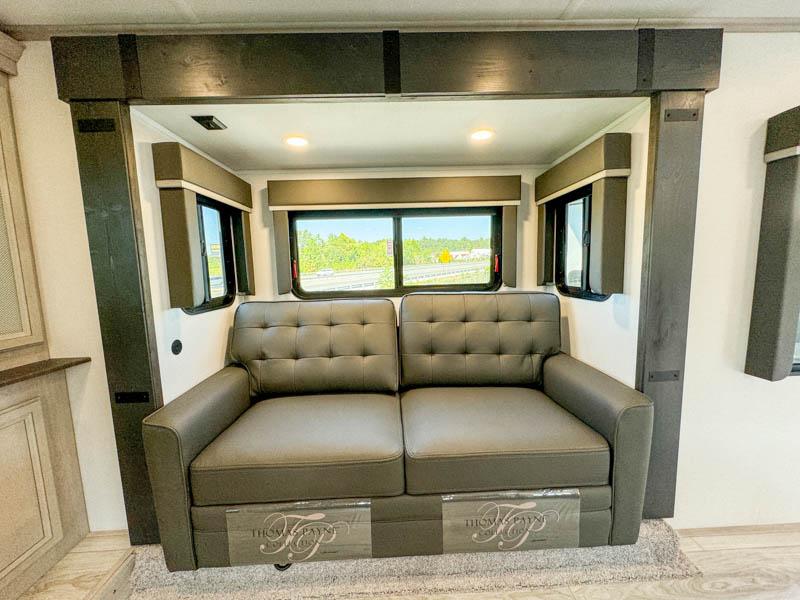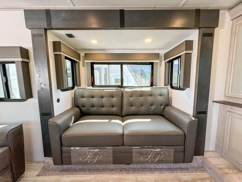 Live the high life with a Keystone Montana High Country fifth wheel! You'll have all the luxury you need with these units. They come with a Road Armor™ shock absorbing hitch pin, a MaxTurn™ front cap with KeyShield™ automotive-grade paint, a fully walkable roof with Alpha seamless TPO membrane system, and an insulated underbelly with forced hot air and electric tank heaters. The Road Armor™ suspension has 360° vibration control for a smooth ride, and the Ground Control® four-point electric auto-leveling with hitch memory will make set-up quite easy. The interior is elegantly appointed with the Thomas Payne Collection furniture, hardwood decorative slide-out fascia, Beauflor® vinyl throughout with Syntec® woven flooring in main slide outs, accent crown molding, and Sandstone Maple cabinetry.