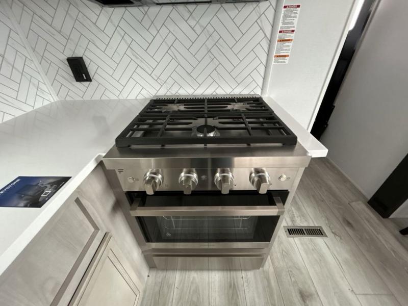 Live the high life with a Keystone Montana High Country fifth wheel! You'll have all the luxury you need with these units. They come with a Road Armor™ shock absorbing hitch pin, a MaxTurn™ front cap with KeyShield™ automotive-grade paint, a fully walkable roof with Alpha seamless TPO membrane system, and an insulated underbelly with forced hot air and electric tank heaters. The Road Armor™ suspension has 360° vibration control for a smooth ride, and the Ground Control® four-point electric auto-leveling with hitch memory will make set-up quite easy. The interior is elegantly appointed with the Thomas Payne Collection furniture, hardwood decorative slide-out fascia, Beauflor® vinyl throughout with Syntec® woven flooring in main slide outs, accent crown molding, and Sandstone Maple cabinetry.