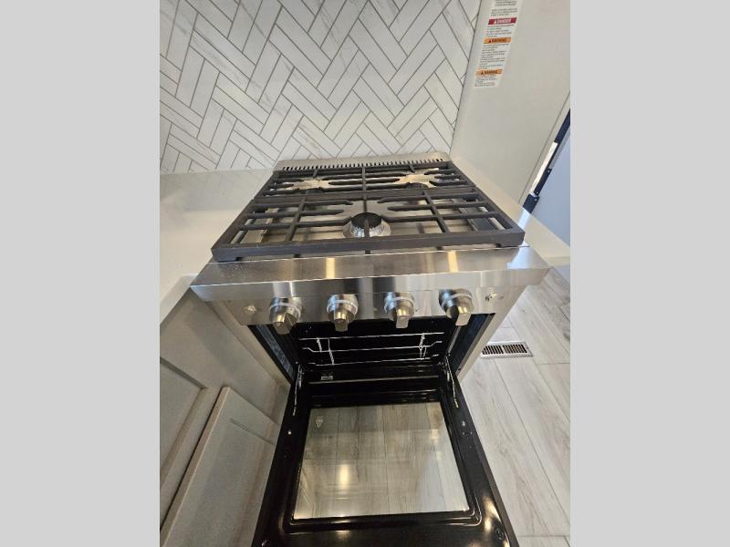 Live the high life with a Keystone Montana High Country fifth wheel! You'll have all the luxury you need with these units. They come with a Road Armor™ shock absorbing hitch pin, a MaxTurn™ front cap with KeyShield™ automotive-grade paint, a fully walkable roof with Alpha seamless TPO membrane system, and an insulated underbelly with forced hot air and electric tank heaters. The Road Armor™ suspension has 360° vibration control for a smooth ride, and the Ground Control® four-point electric auto-leveling with hitch memory will make set-up quite easy. The interior is elegantly appointed with the Thomas Payne Collection furniture, hardwood decorative slide-out fascia, Beauflor® vinyl throughout with Syntec® woven flooring in main slide outs, accent crown molding, and Sandstone Maple cabinetry.