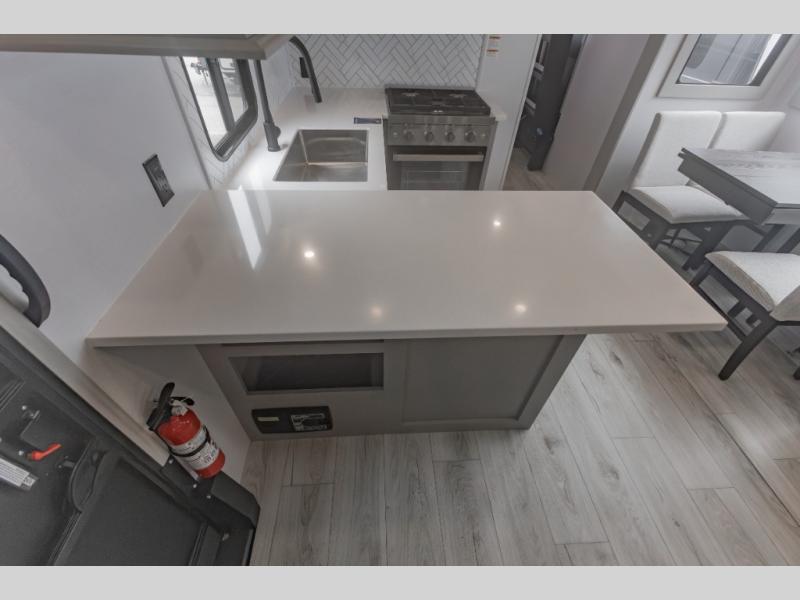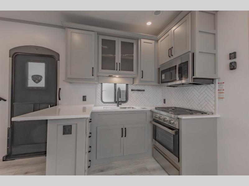 Live the high life with a Keystone Montana High Country fifth wheel! You'll have all the luxury you need with these units. They come with a Road Armor™ shock absorbing hitch pin, a MaxTurn™ front cap with KeyShield™ automotive-grade paint, a fully walkable roof with Alpha seamless TPO membrane system, and an insulated underbelly with forced hot air and electric tank heaters. The Road Armor™ suspension has 360° vibration control for a smooth ride, and the Ground Control® four-point electric auto-leveling with hitch memory will make set-up quite easy. The interior is elegantly appointed with the Thomas Payne Collection furniture, hardwood decorative slide-out fascia, Beauflor® vinyl throughout with Syntec® woven flooring in main slide outs, accent crown molding, and Sandstone Maple cabinetry.
