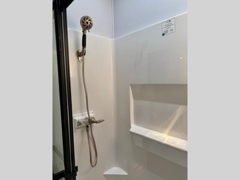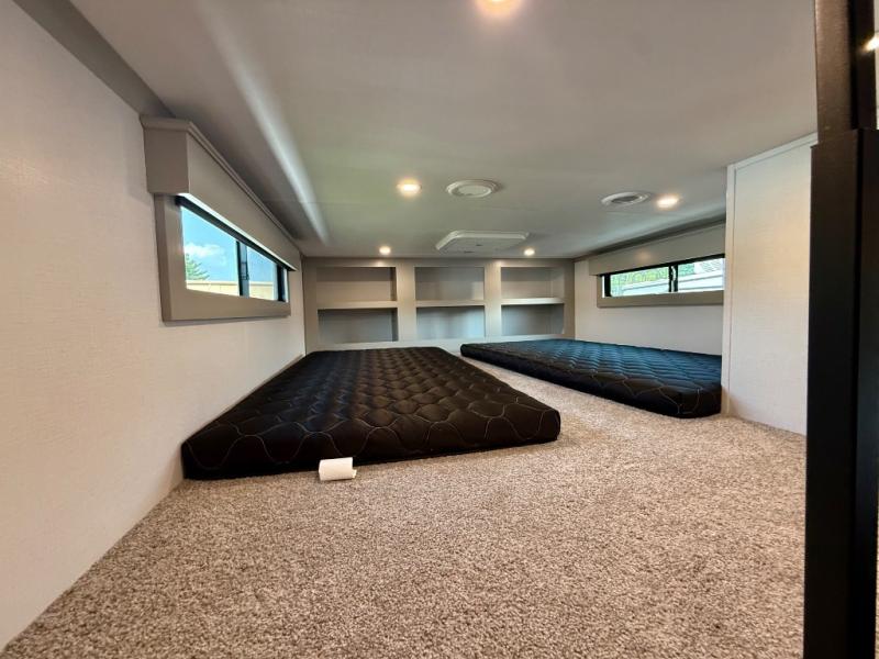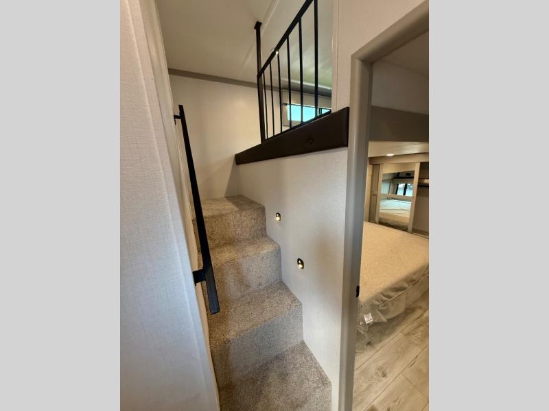 Include all of your favorite people on your next adventure in this Montana High Country fifth wheel! Not only is there a rear private bedroom with a king-size bed for you, but there is also a loft above with stairs that take you to the bunk mats. Now your kids will have their own space too. You can even host a few other travelers up front in the separate living room on the two hide-a-bed sofas. This area will be perfect for cozy sleeping because of the fireplace, and you can even watch a movie as you drift off to sleep because of the 50" LCD TV too. The full bathroom has a pivot-hinge door and a 48" x 30" shower with seat, and the kitchen has a breakfast bar that you can sit at to eat your cereal each morning