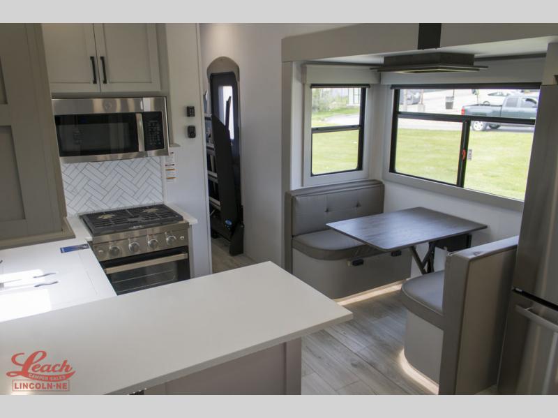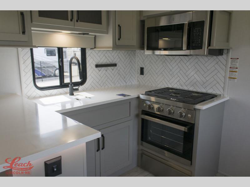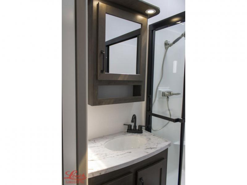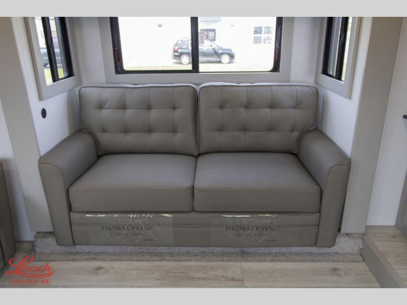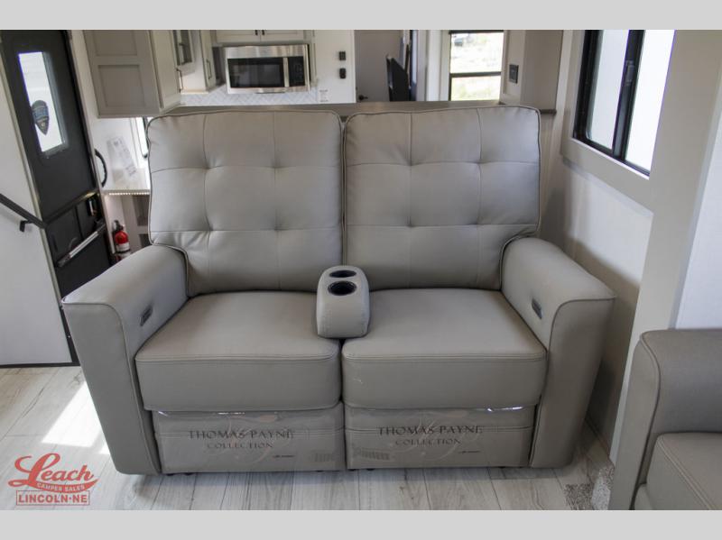 Live the high life with a Keystone Montana High Country fifth wheel! You'll have all the luxury you need with these units. They come with a Road Armor™ shock absorbing hitch pin, a MaxTurn™ front cap with KeyShield™ automotive-grade paint, a fully walkable roof with Alpha seamless TPO membrane system, and an insulated underbelly with forced hot air and electric tank heaters. The Road Armor™ suspension has 360° vibration control for a smooth ride, and the Ground Control® four-point electric auto-leveling with hitch memory will make set-up quite easy. The interior is elegantly appointed with the Thomas Payne Collection furniture, hardwood decorative slide-out fascia, Beauflor® vinyl throughout with Syntec® woven flooring in main slide outs, accent crown molding, and Sandstone Maple cabinetry.