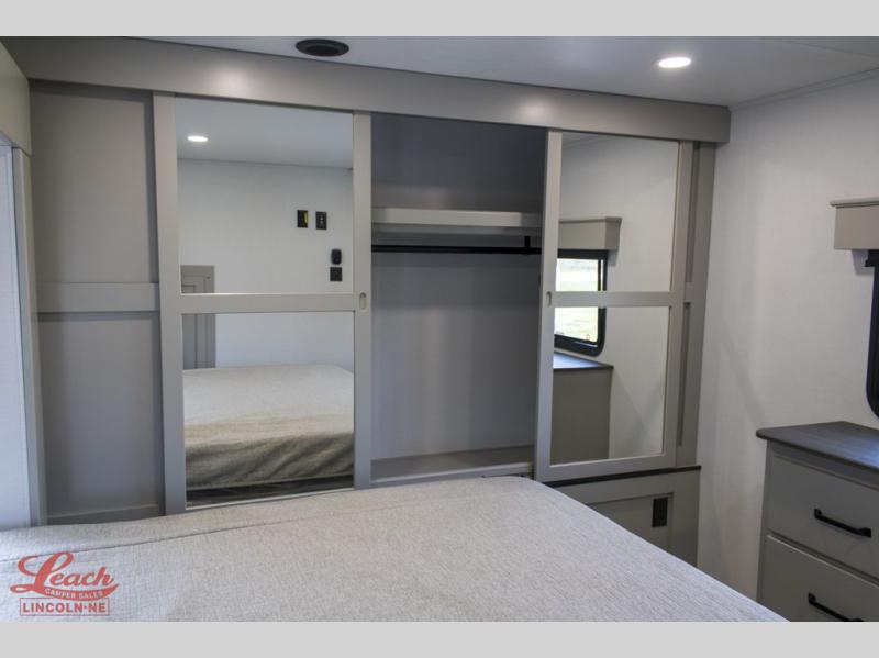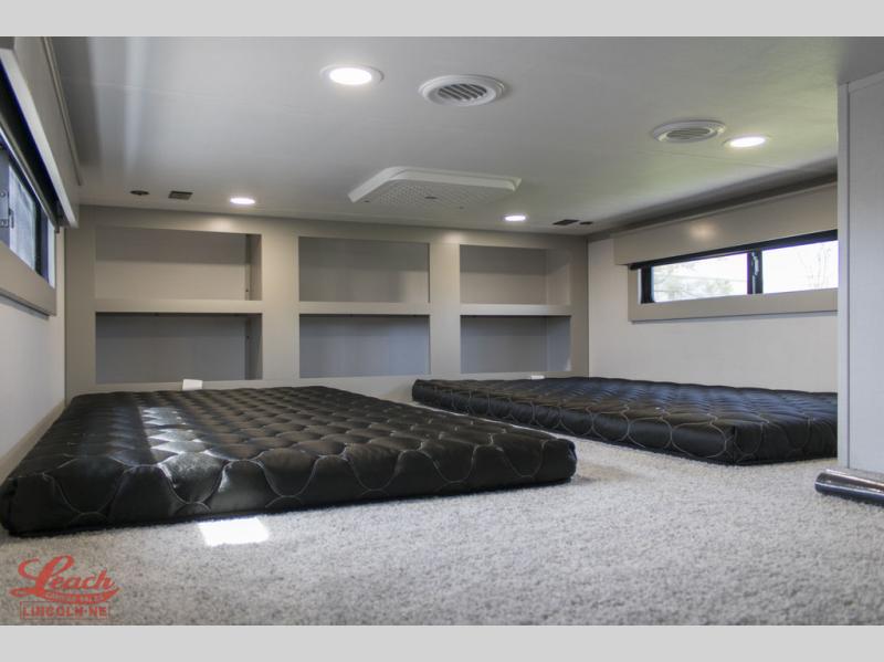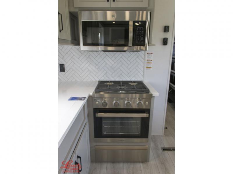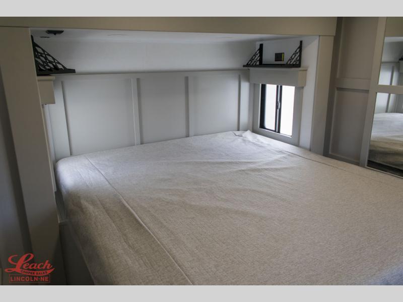Include all of your favorite people on your next adventure in this Montana High Country fifth wheel! Not only is there a rear private bedroom with a king-size bed for you, but there is also a loft above with stairs that take you to the bunk mats. Now your kids will have their own space too. You can even host a few other travelers up front in the separate living room on the two hide-a-bed sofas. This area will be perfect for cozy sleeping because of the fireplace, and you can even watch a movie as you drift off to sleep because of the 50" LCD TV too. The full bathroom has a pivot-hinge door and a 48" x 30" shower with seat, and the kitchen has a breakfast bar that you can sit at to eat your cereal each morning