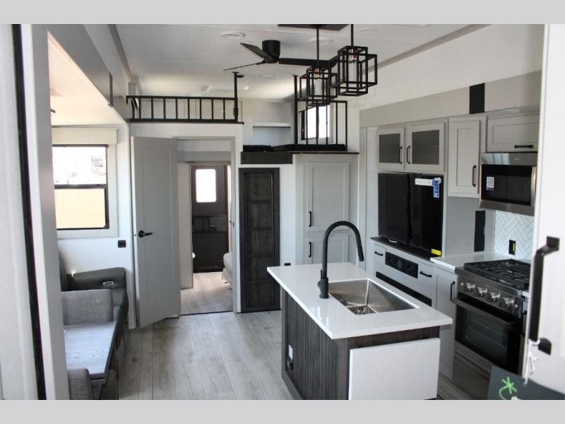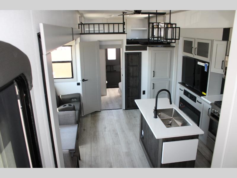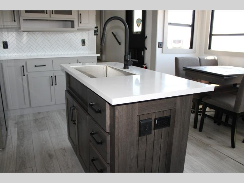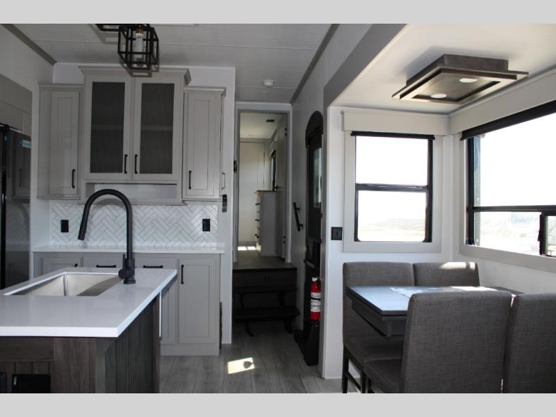The interior of the Montana High Country 381TB is beautifully appointed with high-end finishes and residential-style details.