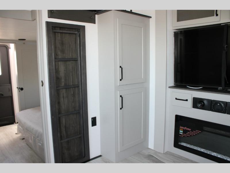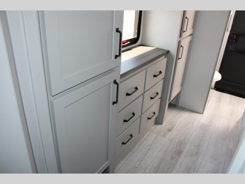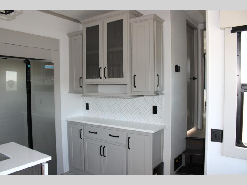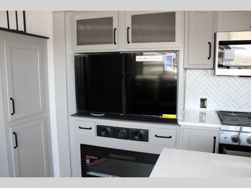 - Hardwood Decorative Slide-Out Fascia and Crown Molding: The attention to detail in the decorative slide-out fascia and crown molding enhances the aesthetic appeal of the interior.
