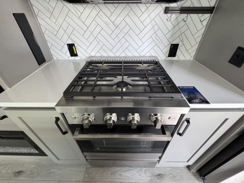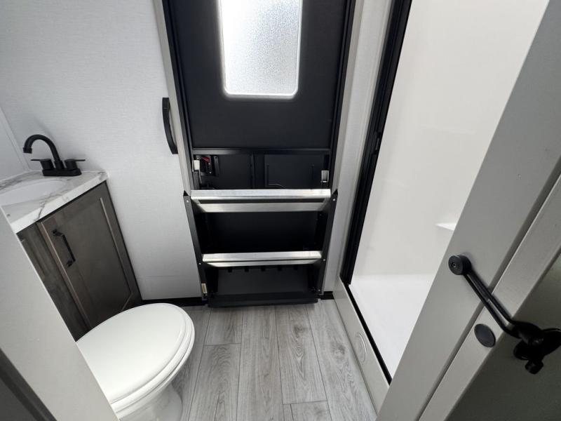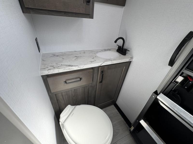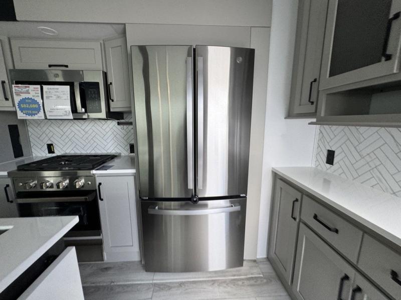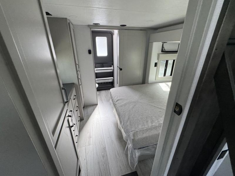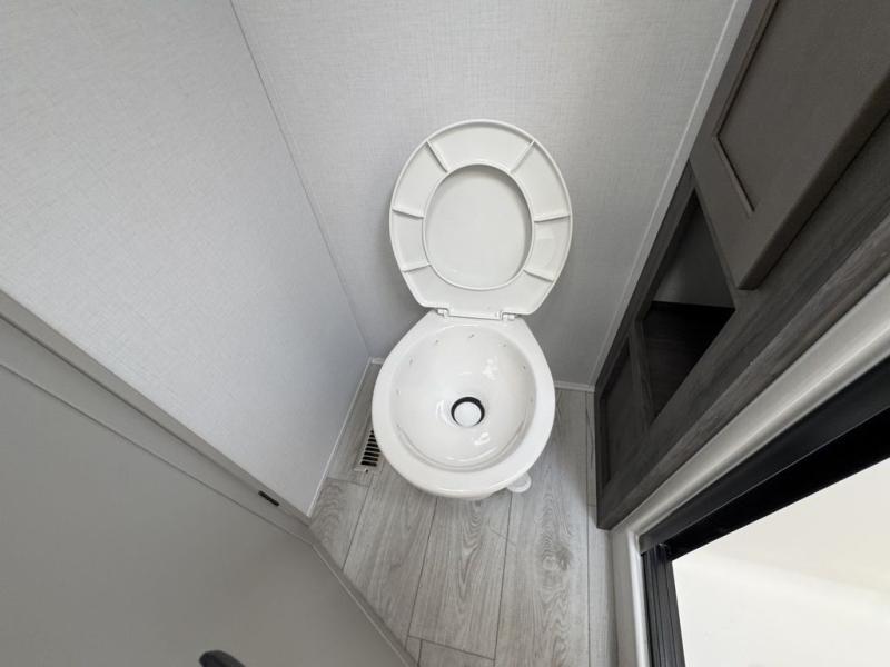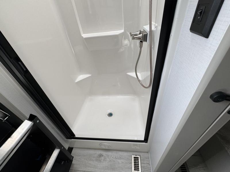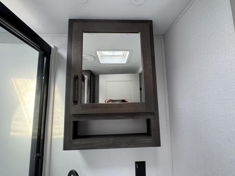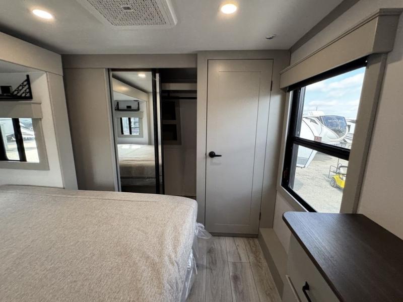 Two full bathrooms and two private bedrooms make this fifth wheel perfect for camping with friends and family. The front bedroom includes a king bed with a queen bed option, a large front wardrobe, plus stackable washer and dryer prep. The rear master bedroom has two closets plus a dresser and underbed storage, plus its own full bath with an exterior entry door for convenience. There is even a loft above the rear bedroom for even more sleeping space! Everyone can meet in the main living area/kitchen to relax on the power theater seat as the chef cooks dinner, and you can watch a show on the Smart HDTV to pass the time. The kitchen island will provide more counter space, along with the hutch that includes overhead cabinets as well. Don't let this luxury fifth wheel slip away!