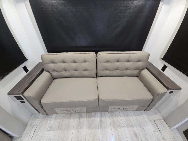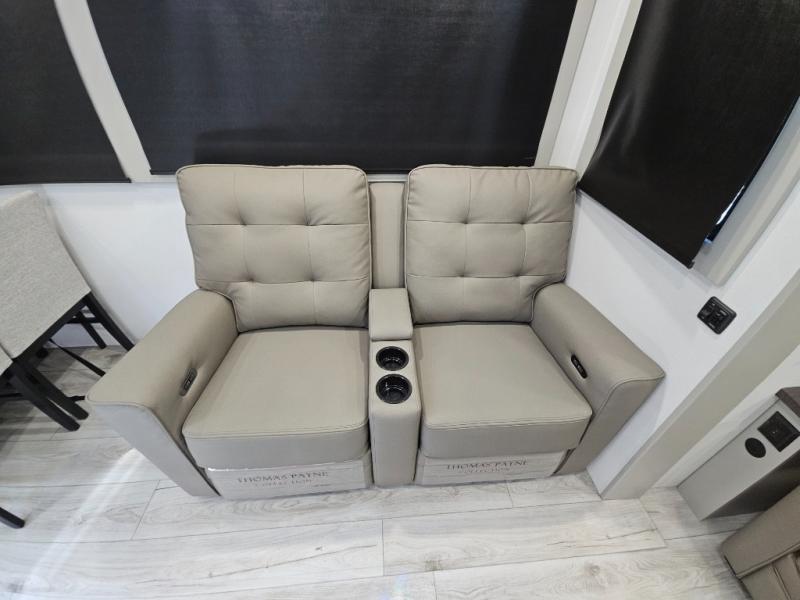 Live the high life with a Keystone Montana High Country fifth wheel! You'll have all the luxury you need with these units. They come with a Road Armor™ shock absorbing hitch pin, a MaxTurn™ front cap with KeyShield™ automotive-grade paint, a fully walkable roof with Alpha seamless TPO membrane system, and an insulated underbelly with forced hot air and electric tank heaters. The Road Armor™ suspension has 360° vibration control for a smooth ride, and the Ground Control® four-point electric auto-leveling with hitch memory will make set-up quite easy. The interior is elegantly appointed with the Thomas Payne Collection furniture, hardwood decorative slide-out fascia, Beauflor® vinyl throughout with Syntec® woven flooring in main slide outs, accent crown molding, and Sandstone Maple cabinetry.