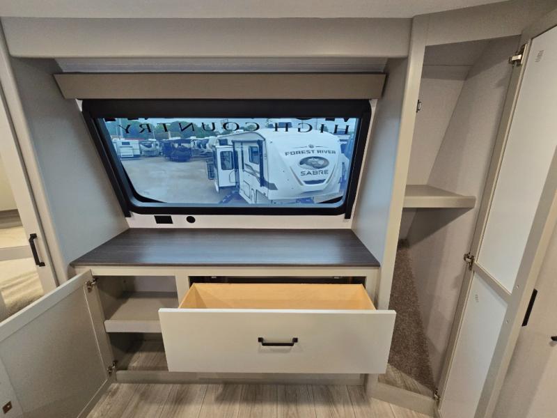 Live the high life with a Keystone Montana High Country fifth wheel! You'll have all the luxury you need with these units. They come with a Road Armor™ shock absorbing hitch pin, a MaxTurn™ front cap with KeyShield™ automotive-grade paint, a fully walkable roof with Alpha seamless TPO membrane system, and an insulated underbelly with forced hot air and electric tank heaters. The Road Armor™ suspension has 360° vibration control for a smooth ride, and the Ground Control® four-point electric auto-leveling with hitch memory will make set-up quite easy. The interior is elegantly appointed with the Thomas Payne Collection furniture, hardwood decorative slide-out fascia, Beauflor® vinyl throughout with Syntec® woven flooring in main slide outs, accent crown molding, and Sandstone Maple cabinetry.