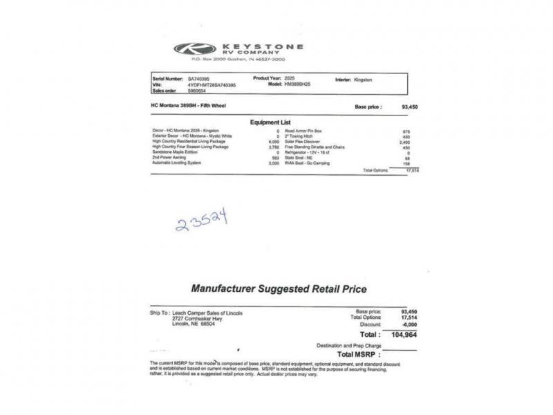 New 2025 Keystone RV Montana High Country 389BH Fifth Wheel